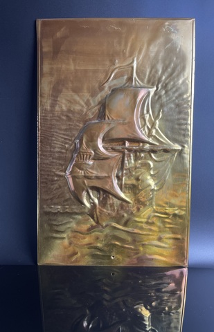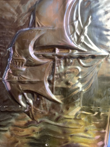 Панно настенное чеканка сувенир "Фрегат" СССР, корабль, винтаж 1970-1990 гг. Размер - 43.5х27 см. Настенная картина с кораблем, флот. Следы использования, надпись сзади - состояние на фото