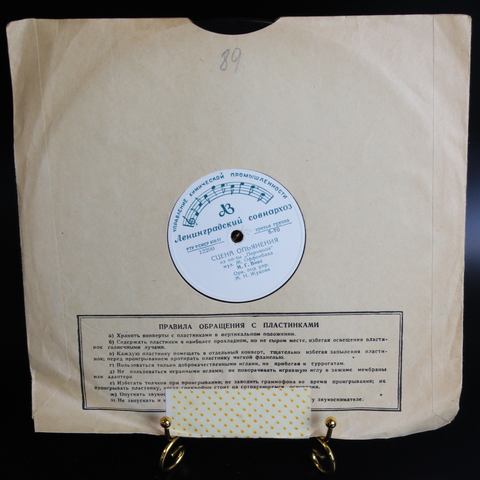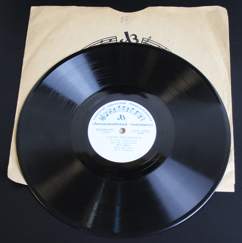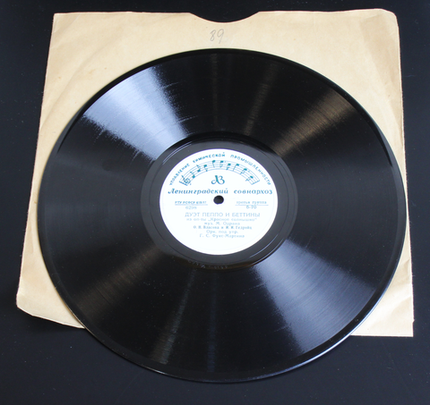 Патефонная пластинка Сцена опьянения- М.Г.Викс /Дуэт Пеппо и Бетттины- О.Н.Власова и И.И.Гедройц, 10 дюймов, 25 см, 78 оборотов,Ленинградский совнархоз СССР середина 20 века