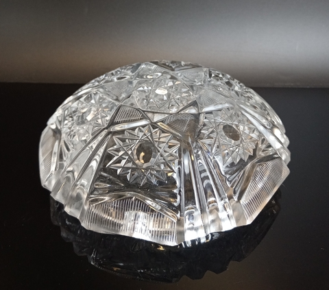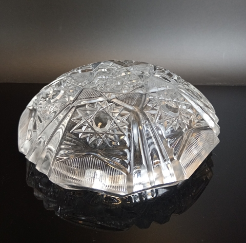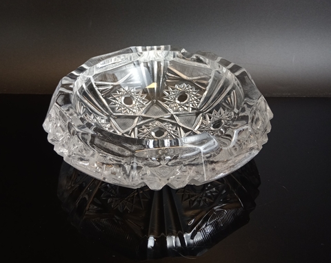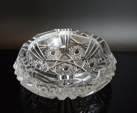 Пепельница, декорированная геометрическим орнаментом, стекло, винтаж СССР 1970-1990 гг. Диаметр - 15 см. Присутствуют следы использования - состояние на фото