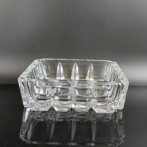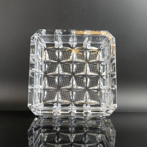 Пепельница хрустальная, матовый хрусталь, алмазная грань, геометрический орнамент, винтаж СССР 1970-1990 гг. Высота - 4 см, диаметр - 14 см. Присутствуют следы использования - состояние на фото
