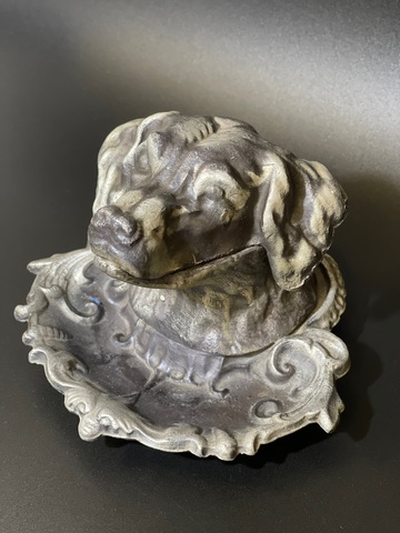Пепельница с откидной крышкой "Голова собаки", силумин, СССР, 1970-1990 гг