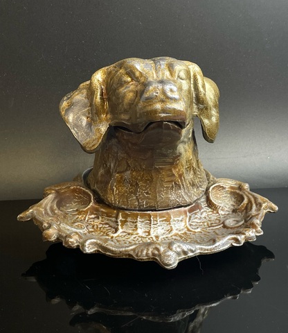 Пепельница с откидной крышкой "Голова собаки", силумин, СССР, 1970-1990 гг. Присутствуют следы использования- состояние на фото