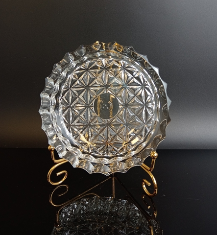 Пепельница с рельефным декором, хрусталь, Уршельский стеклозавод имени 10-й годовщины Октября, СССР, винтаж 1963-1980 гг. Высота- 3 см, диаметр - 13.5 см. Присутствуют следы использования- состояние на фото