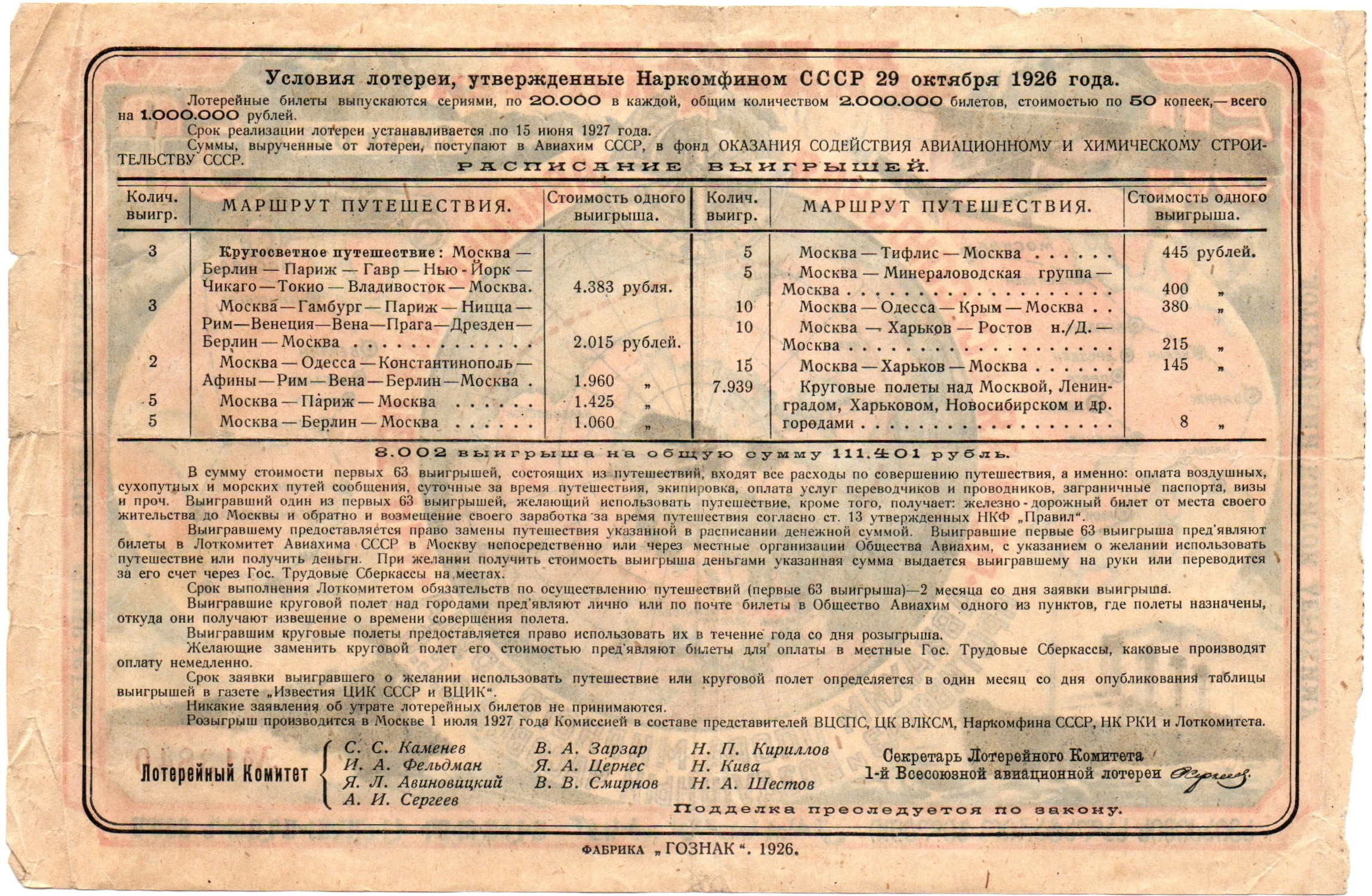 Первая всесоюзная авиационная лотерея АВИАХИМА. Билет 50 копеек 1926 г. Серия 025. № 13840