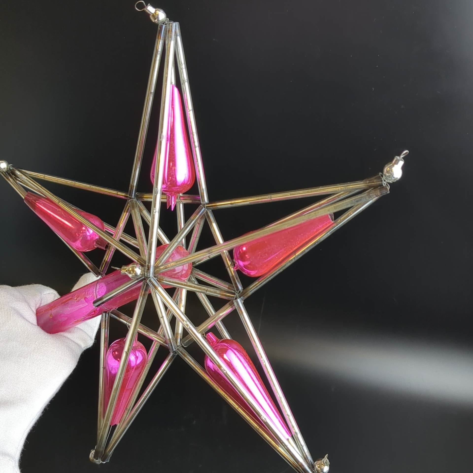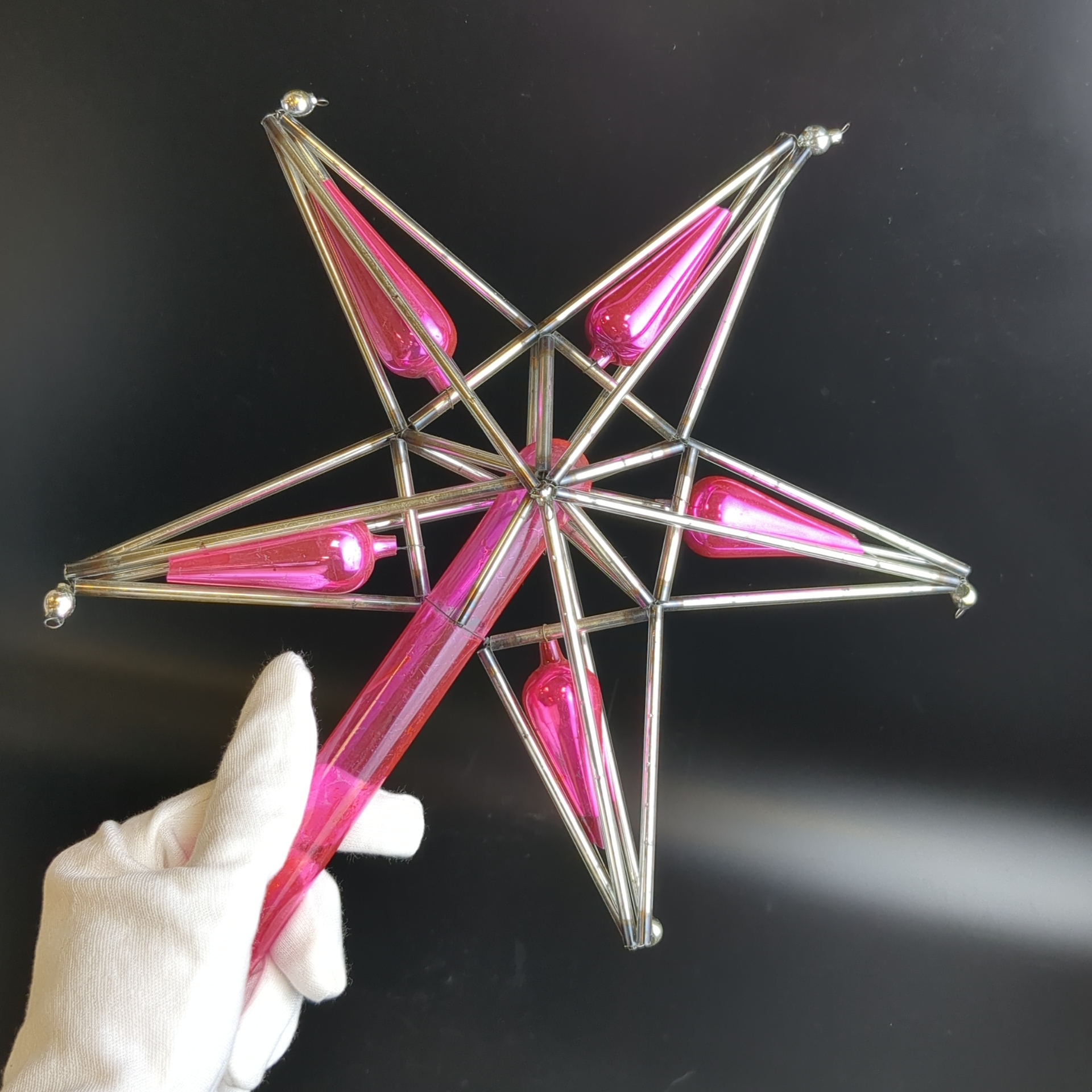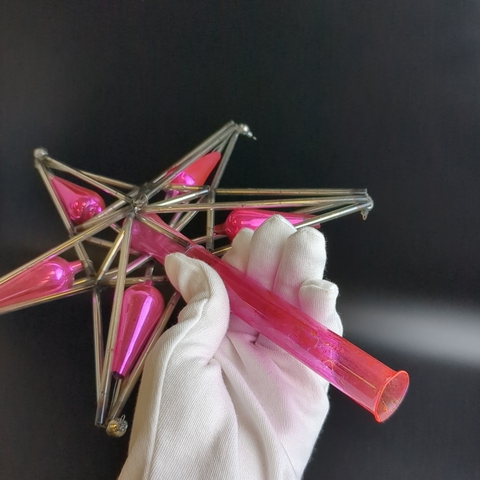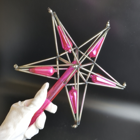 Пика, верхушка звезда на ёлку, стеклярус, 30.5 см, стекло, винтаж СССР 1950-1980 гг. Советские ёлочные игрушки и украшения. Состояние и комплектация на фото.