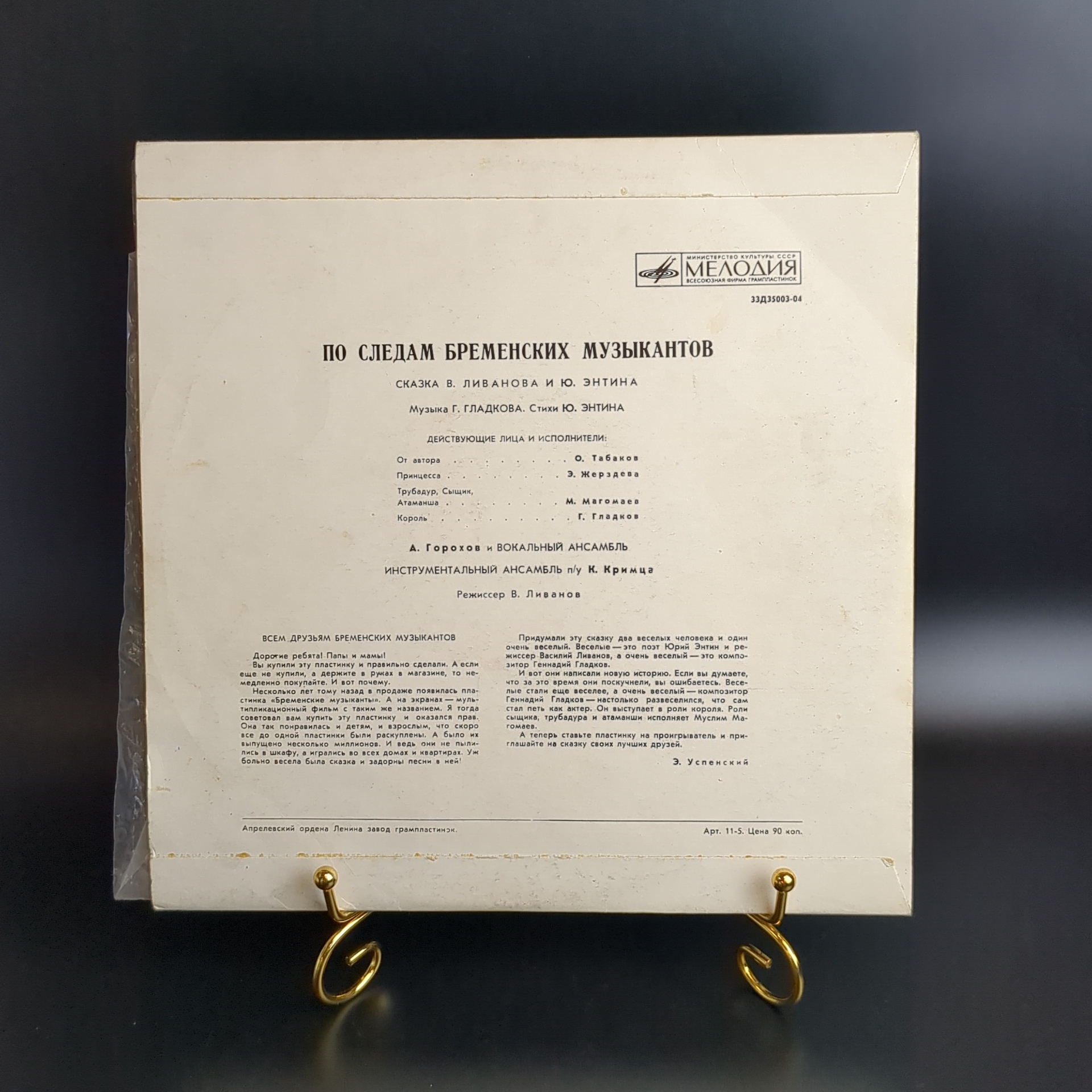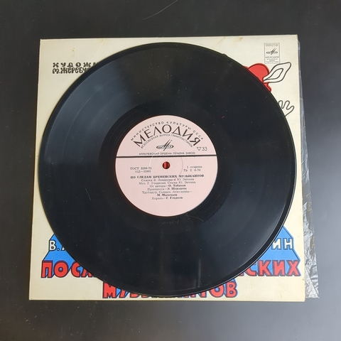 По следам Бременских музыкантов. Сказка В. Ливанова и Ю. Энтина. Виниловая пластинка 10 дюймов, Мелодия СССР