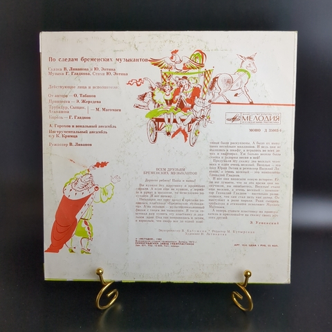 По следам Бременских музыкантов. Сказка В. Ливанова и Ю. Энтина. Виниловая пластинка 10 дюймов, Мелодия СССР 1982 год