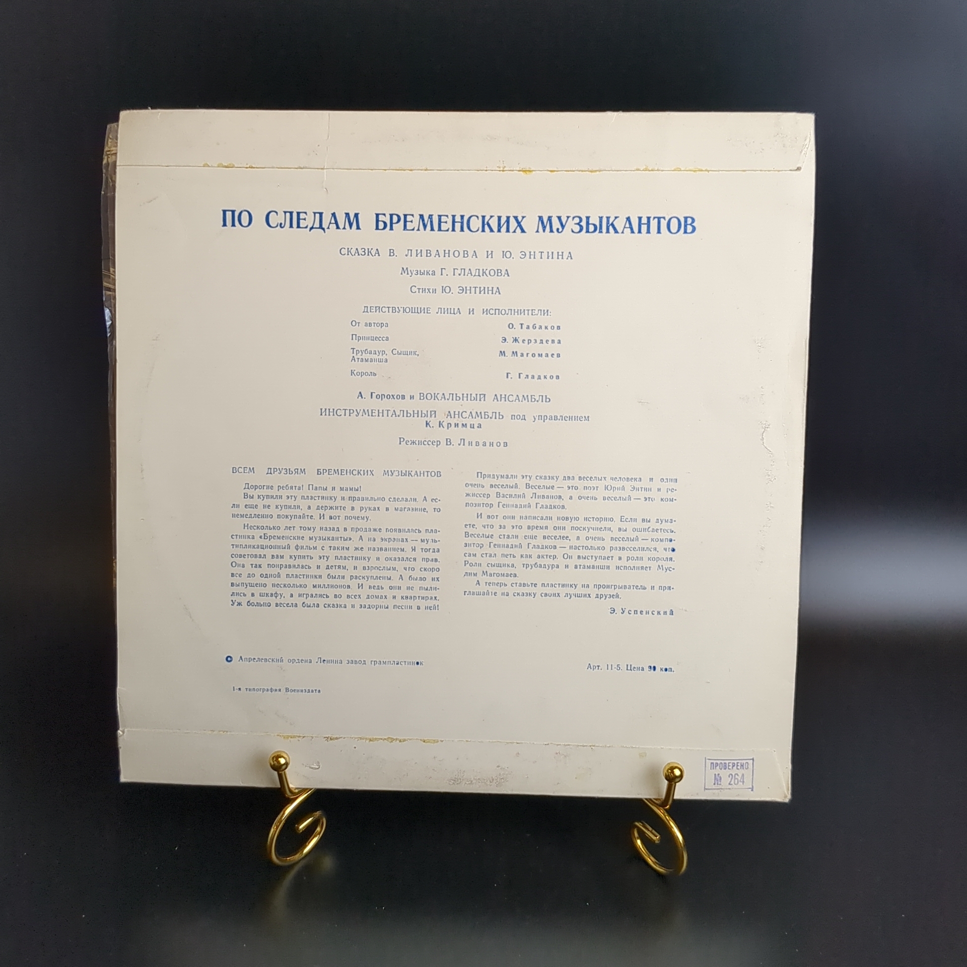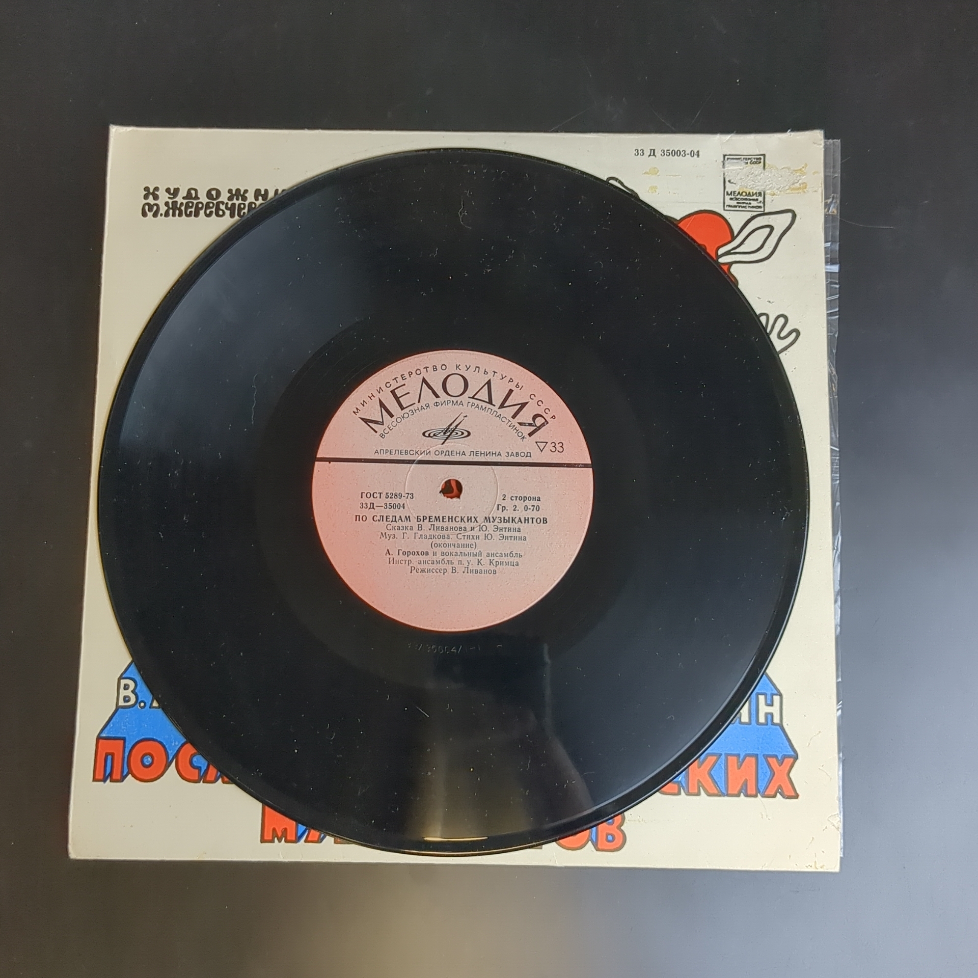 По следам Бременских музыкантов. Сказка В. Ливанова и Ю. Энтина. Виниловая пластинка 10 дюймов, Мелодия СССР