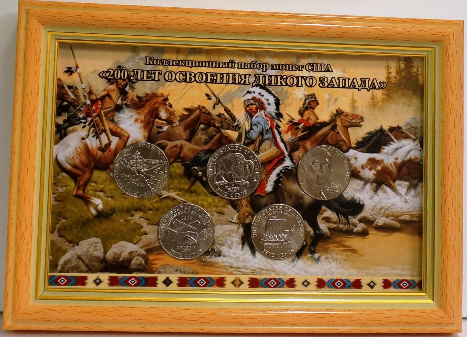 Подарочный набор из 5-ти центовых монет. 5 шт. 200 лет освоения дикого Запада. UNC