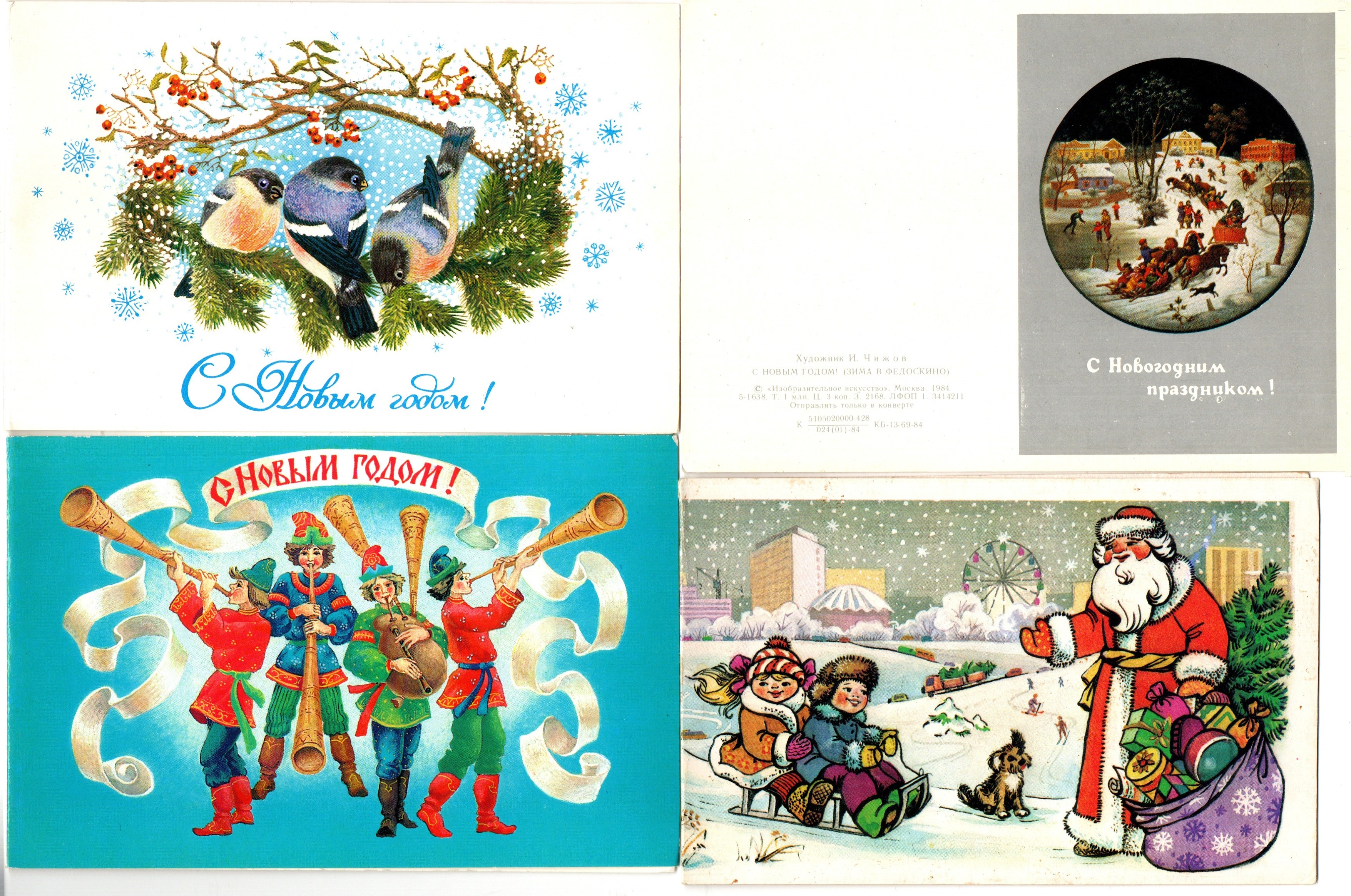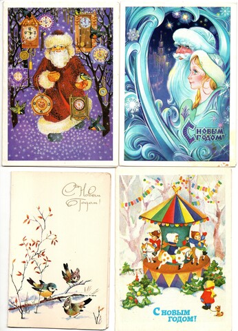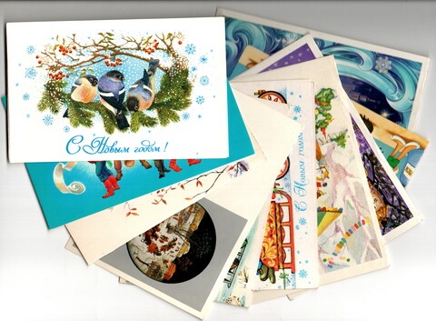 Подборка двойных поздравительных Новогодних открыток — 10 штук— разные художники —чистые, без повторов, времен СССР