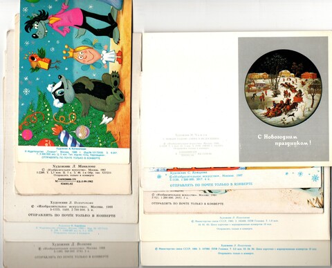 Подборка двойных поздравительных Новогодних открыток — 10 штук— разные художники Похитонова, Манилова, Чижов, Котеночкин, Комарова, Коробова, Волкова —чистые, без повторов, времен СССР. Каждая открытка эксклюзивна и создана талантливыми художниками Советского Союза. Старинные открытки имеют неповторимый стиль СССР и набирают все больше и больше популярности среди коллекционеров. Советские открытки С Новым годом отлично подойдут в личную коллекцию и на подарок коллекционерам открыток. Состояние и комплектация на фото.
