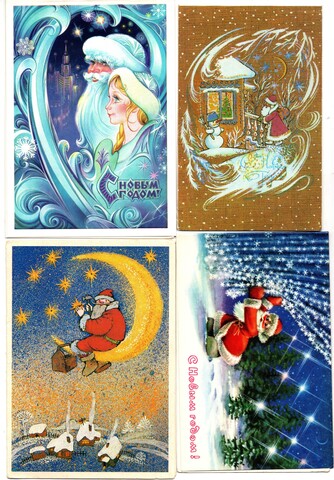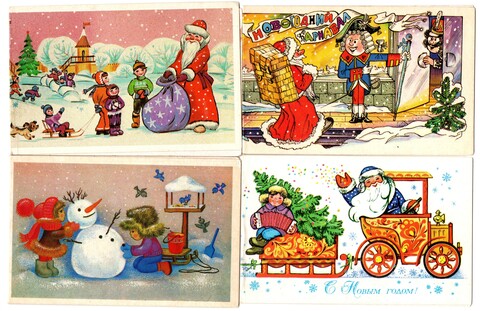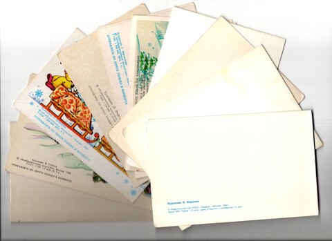 Подборка двойных поздравительных Новогодних открыток — 10 штук— разные художники —чистые, без повторов, времен СССР
