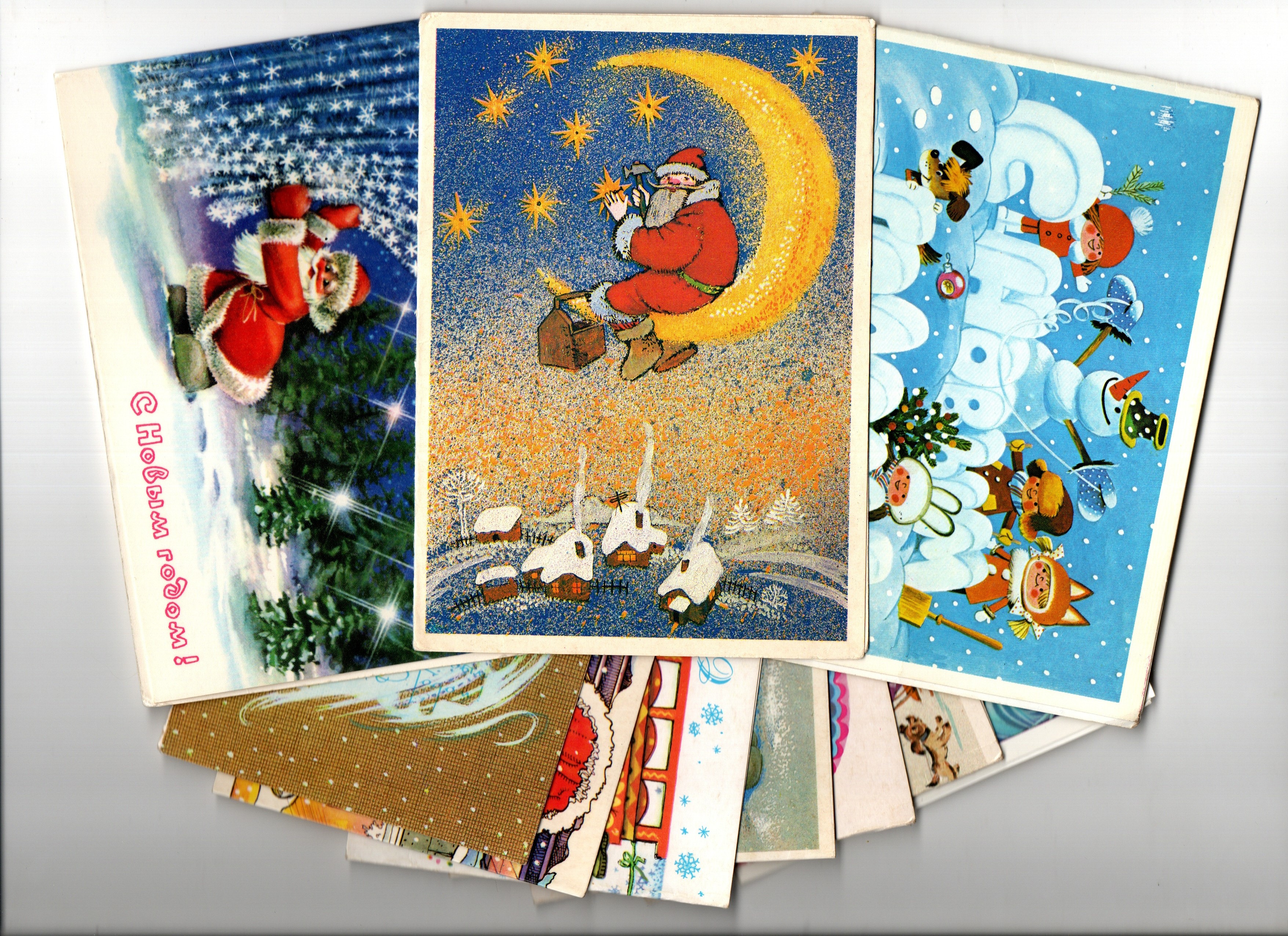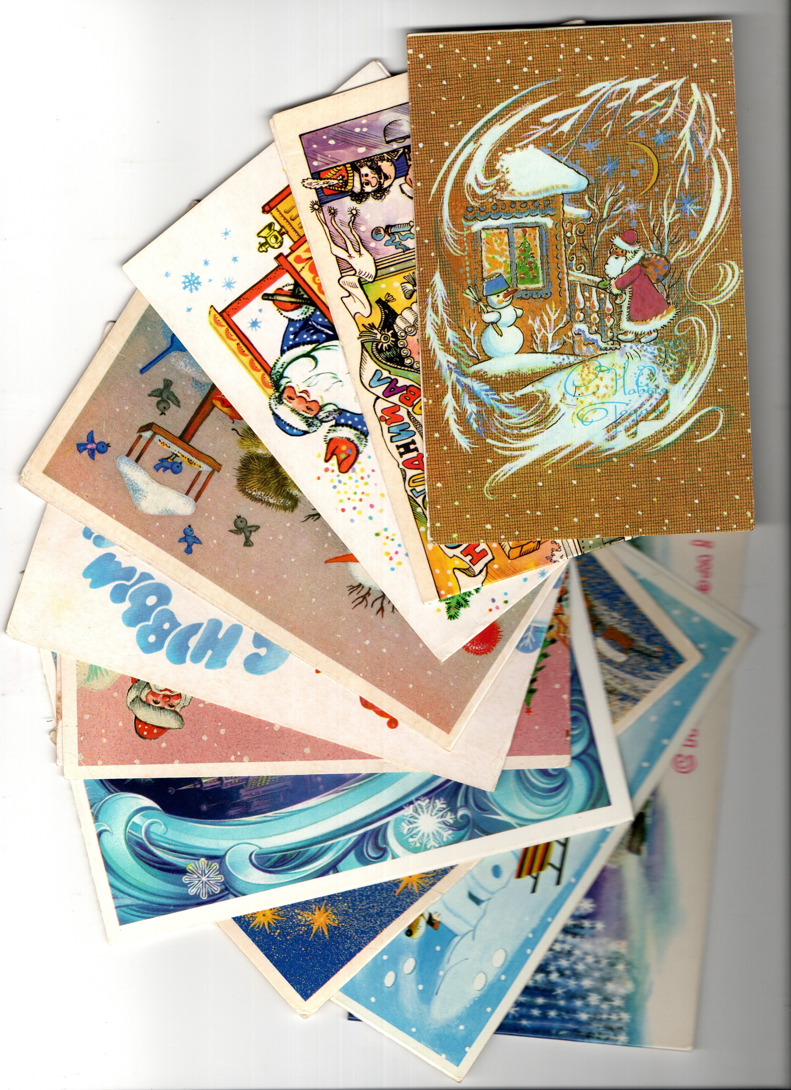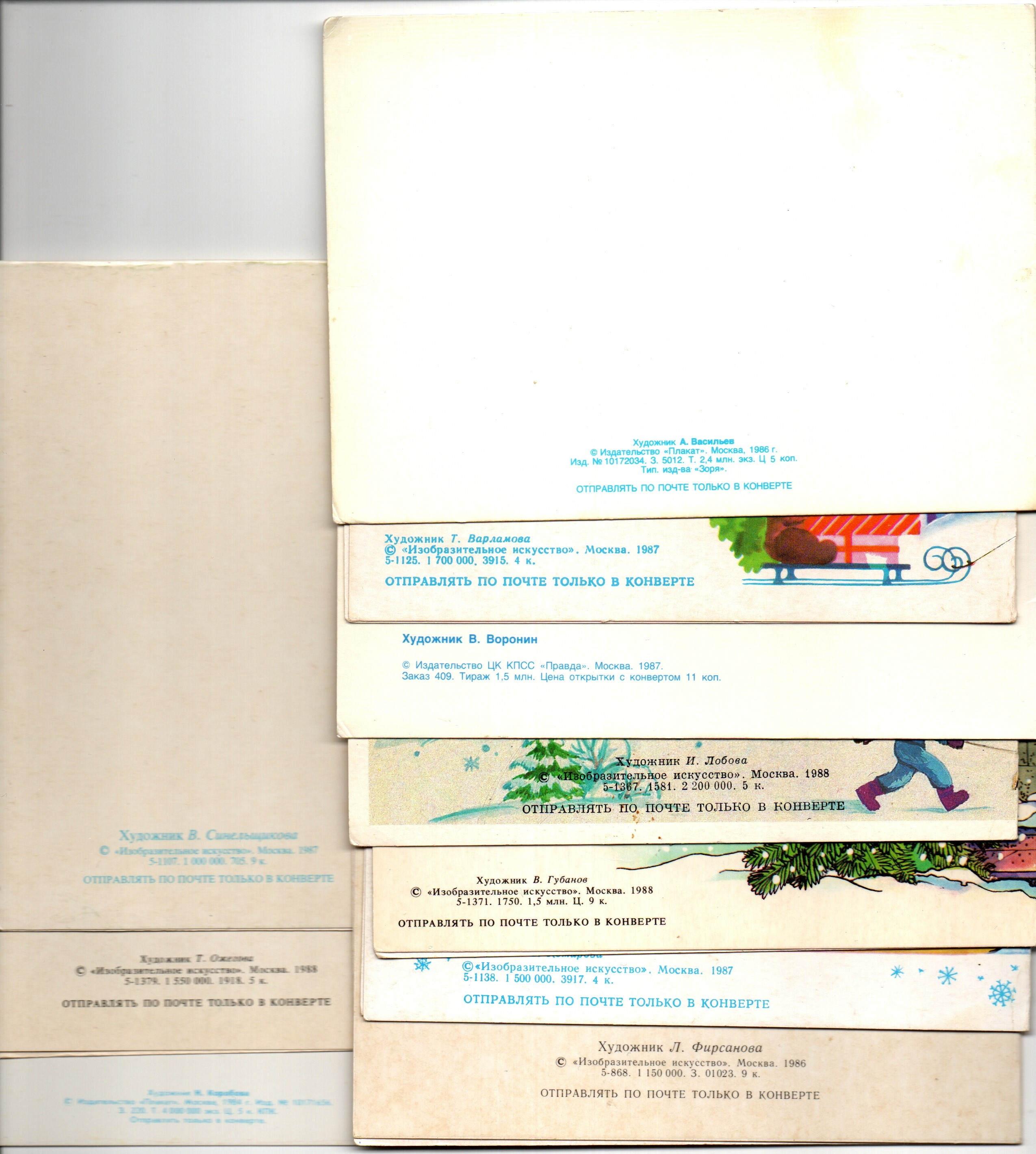 Подборка двойных поздравительных Новогодних открыток — 10 штук— разные художники Губанов, Фирсанова, Ожегова, Варламова, Комарова, Васильев, Лобова, Синельщикова, Воронин, Коробова —чистые, без повторов, времен СССР. Каждая открытка эксклюзивна и создана талантливыми художниками Советского Союза. Старинные открытки имеют неповторимый стиль СССР и набирают все больше и больше популярности среди коллекционеров. Советские открытки С Новым годом отлично подойдут в личную коллекцию и на подарок коллекционерам открыток. Состояние и комплектация на фото.