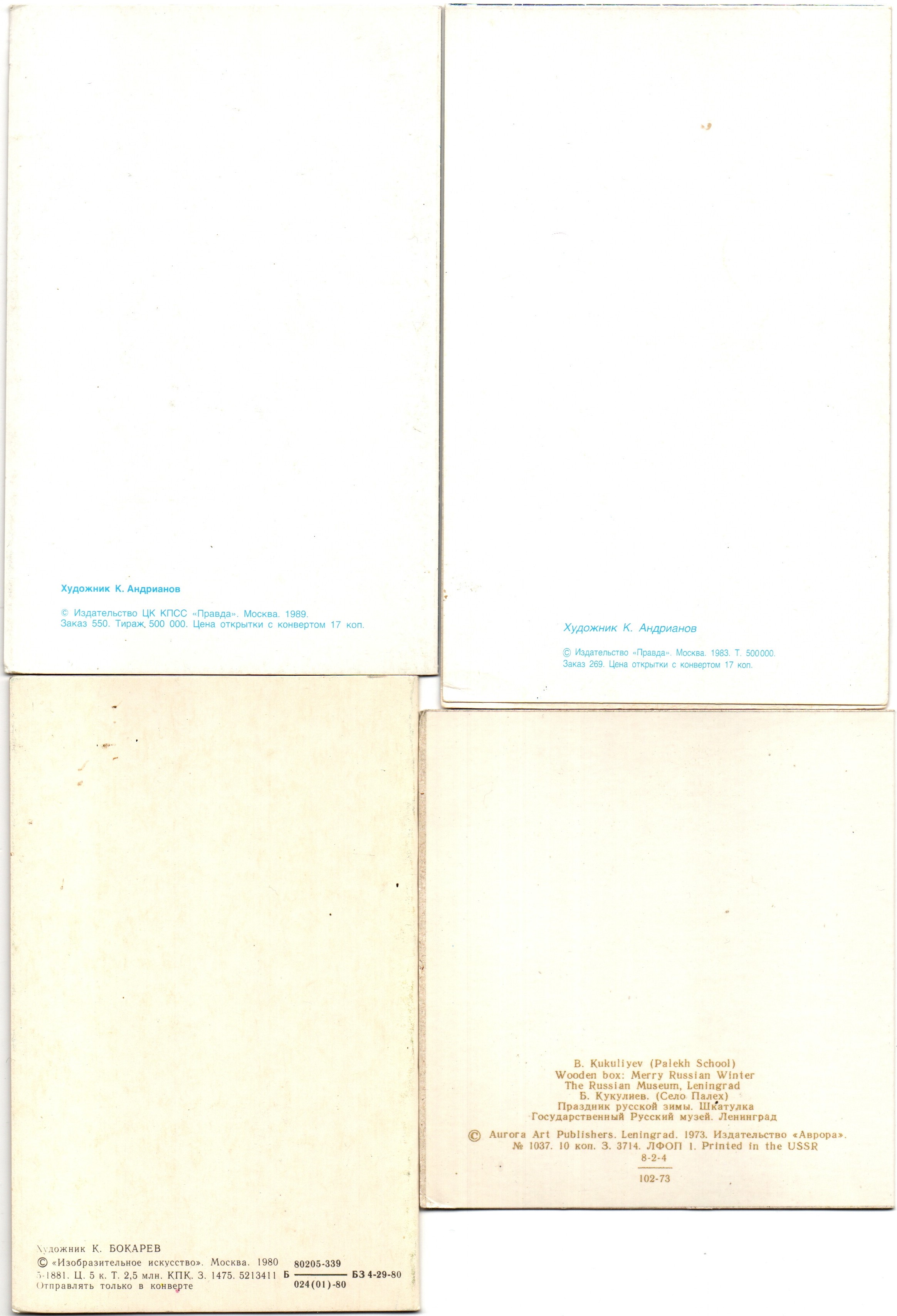Подборка двойных поздравительных Новогодних открыток — 4 штуки— художники Андрианов, Бокарев, Кукулиев, искусство Палех —чистые, без повторов, времен СССР. Каждая открытка эксклюзивна и создана талантливыми художниками Советского Союза. Старинные открытки имеют неповторимый стиль СССР и набирают все больше и больше популярности среди коллекционеров. Советские открытки С Новым годом отлично подойдут в личную коллекцию и на подарок коллекционерам открыток. Состояние и комплектация на фото.
