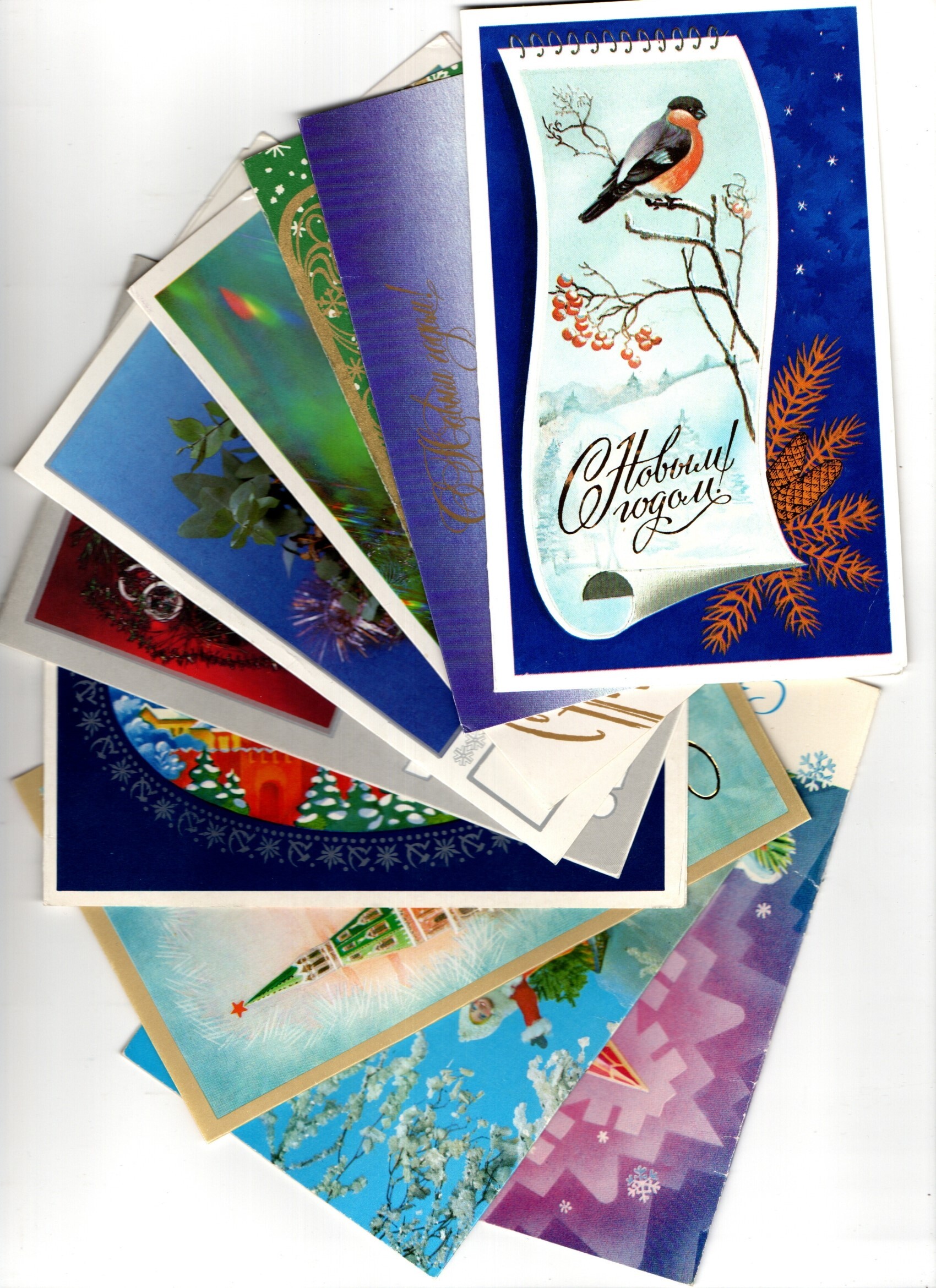 Подборка двойных поздравительных открыток — 10 штук— разные художники— чистые, без повторов. Винтажные новогодние открытки времён СССР это отличный выбор для создания новогоднего настроения! Уникальная подборка из 10 праздничных открыток от разных советских художников под любое настроение! Без повторений – каждая открытка эксклюзивна! Отлично подойдет в личную коллекцию и на подарок коллекционерам открыток.
