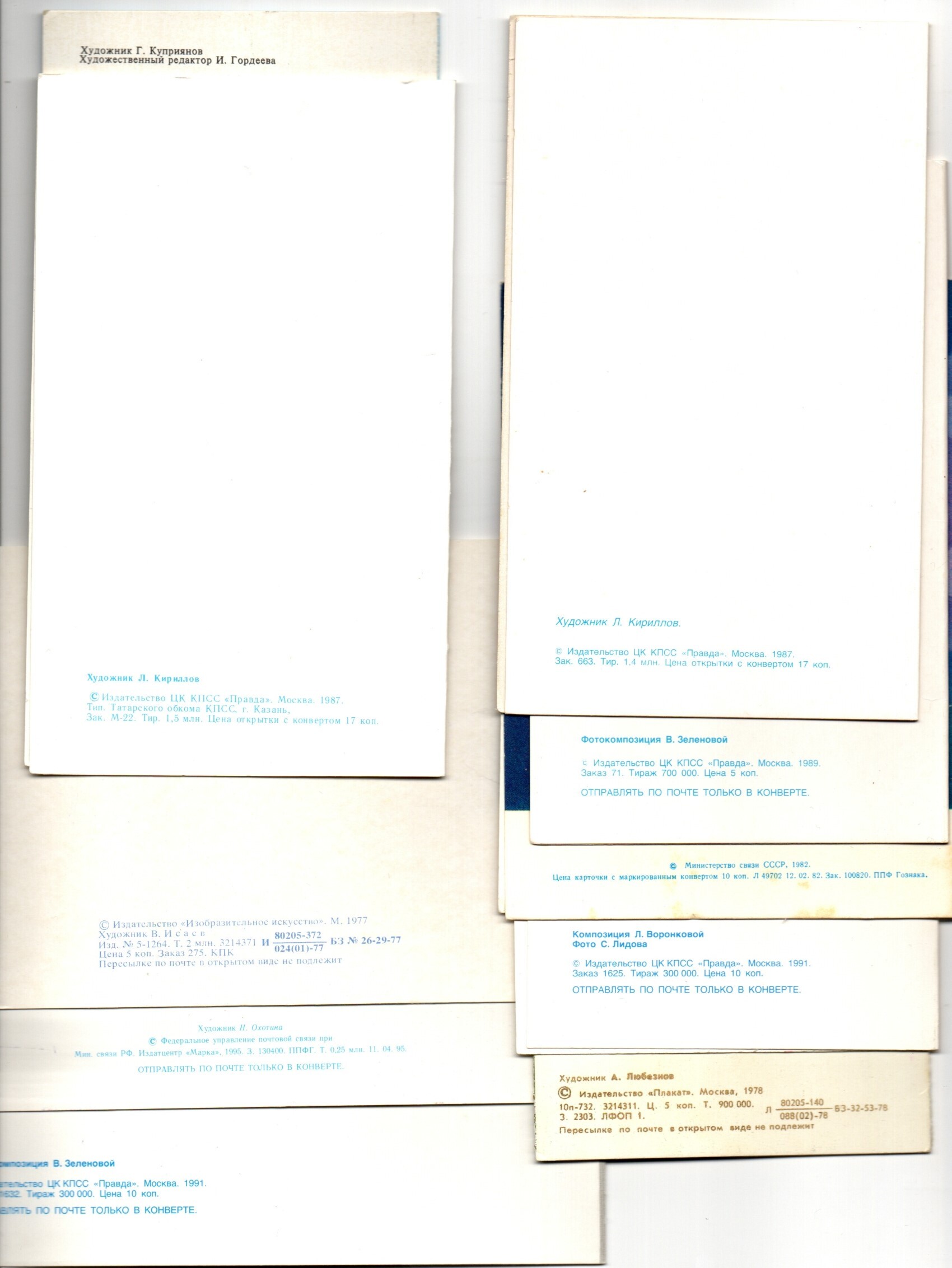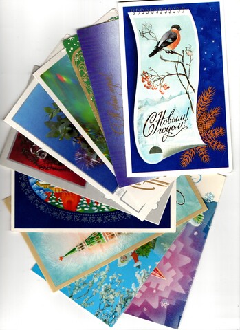 Подборка двойных поздравительных открыток — 10 штук— разные художники — чистые, без повторов