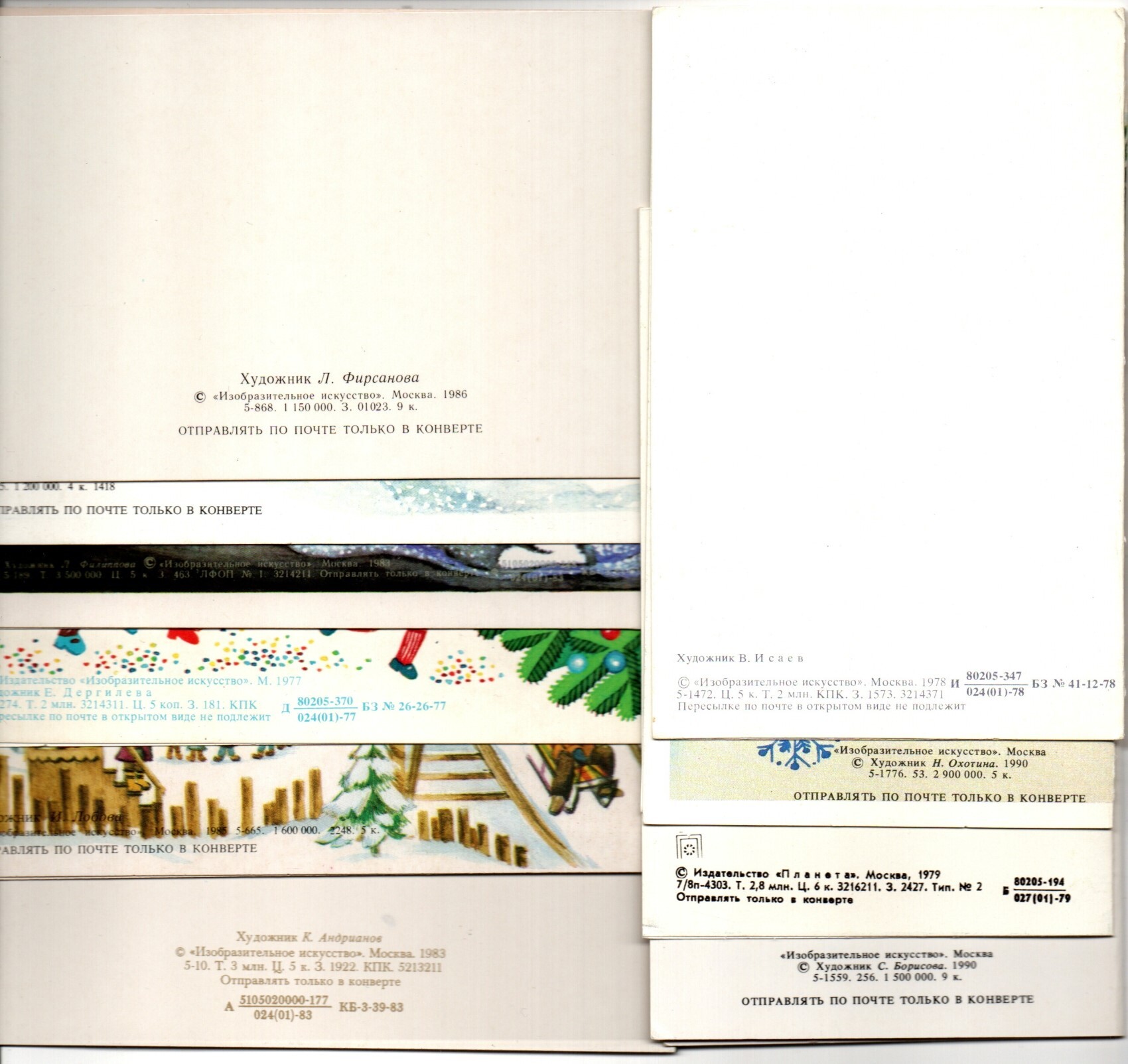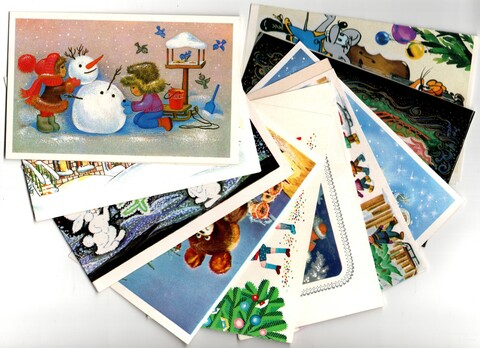 Подборка двойных поздравительных открыток — 10 штук— разные художники — чистые, без повторов