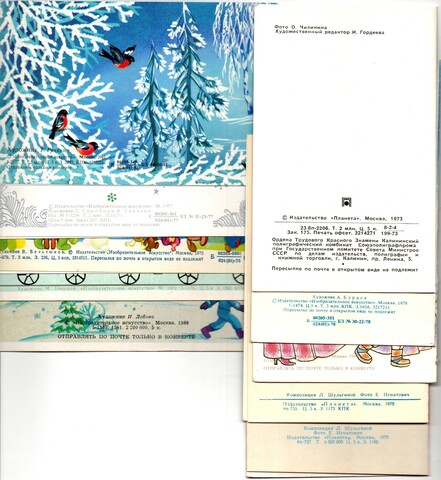 Оригинальная подборка двойных раритетных Новогодних поздравительных открыток — 10 штук — разные художники : Шульгина, Мордвинцева, Ручкина, Бакушев, Соколова, Бельтюков, Чиликина, Лобова, Бурцева чистые, без повторов, времён СССР. Каждая открытка эксклюзивна и создана талантливыми художниками Советского Союза. Старинные открытки имеют неповторимый стиль СССР и набирают все больше и больше популярности среди коллекционеров.