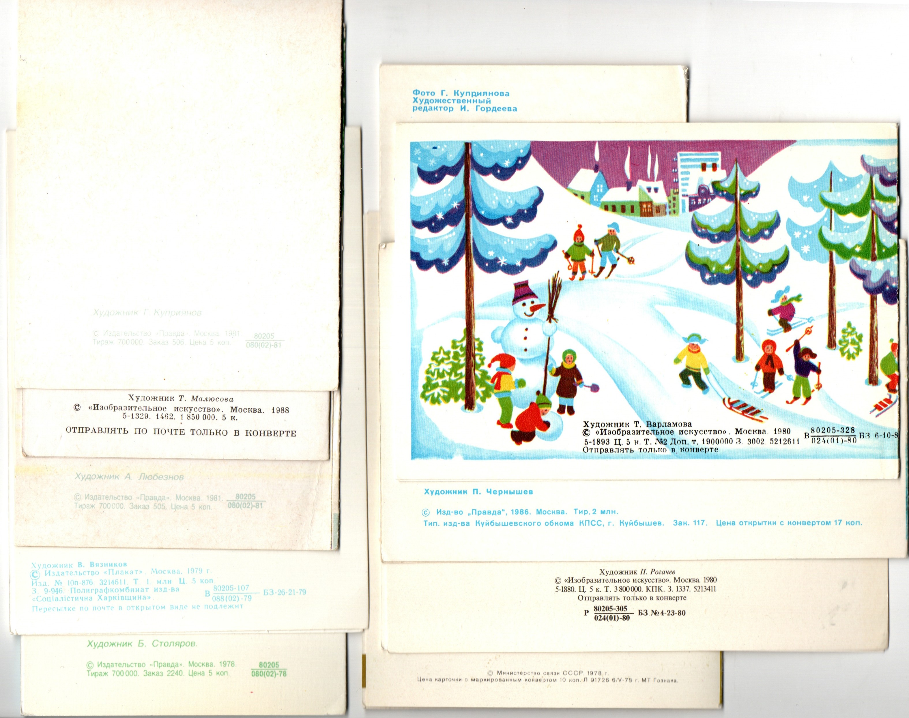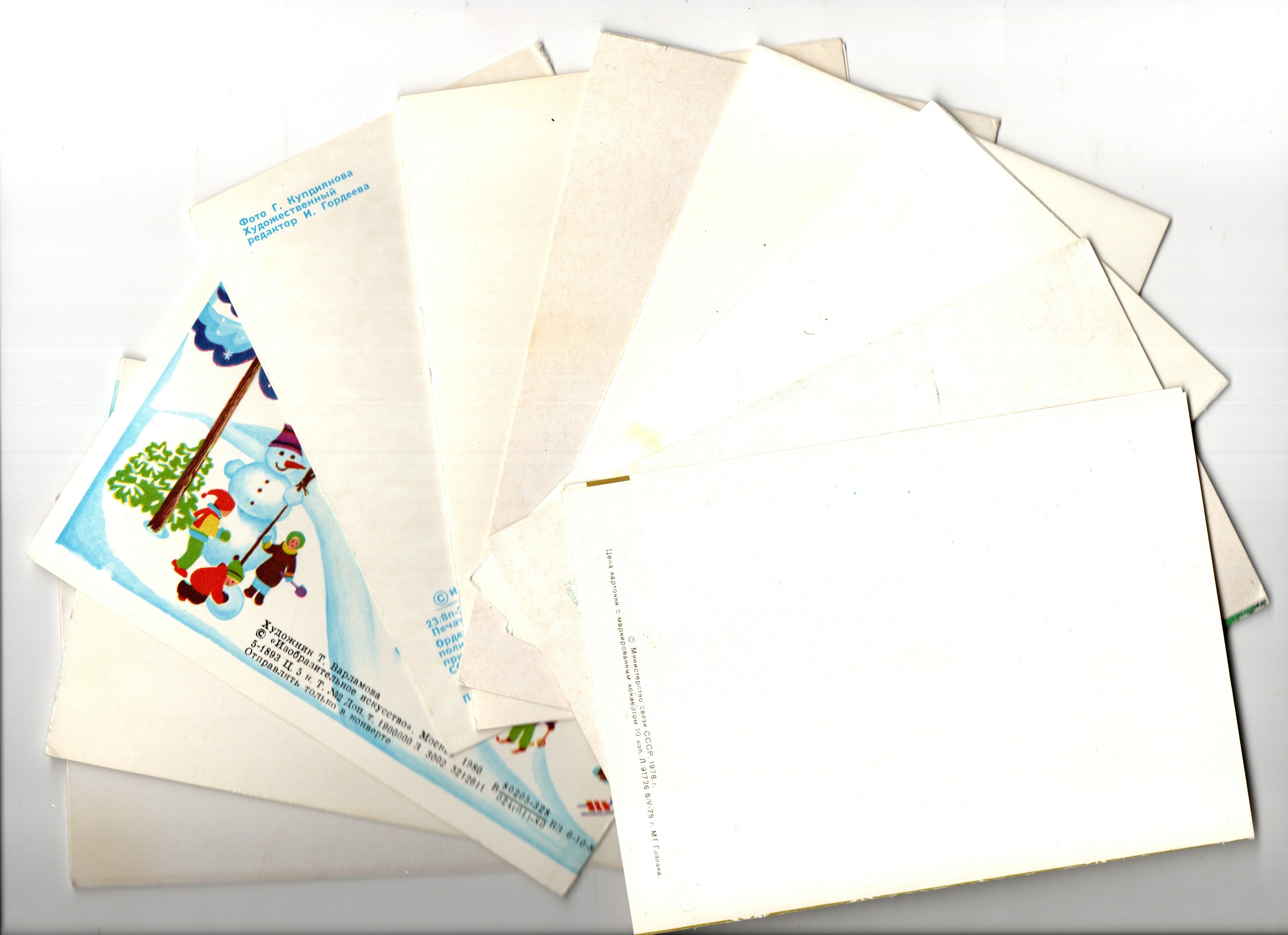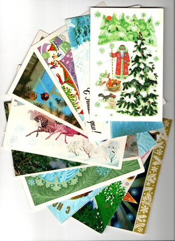 Оригинальная подборка двойных раритетных Новогодних поздравительных открыток — 10 штук — разные художники— подписаны, без повторов, времён СССР. Каждая открытка эксклюзивна и создана талантливыми художниками Советского Союза. Старинные открытки имеют неповторимый стиль СССР и набирают все больше и больше популярности среди коллекционеров.