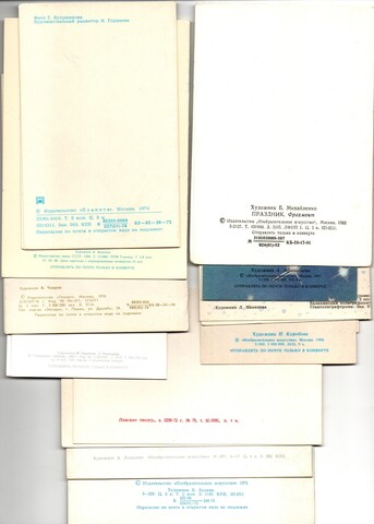 Подборка двойных поздравительных открыток — 11 штук— разные художники — чистые, без повторов
