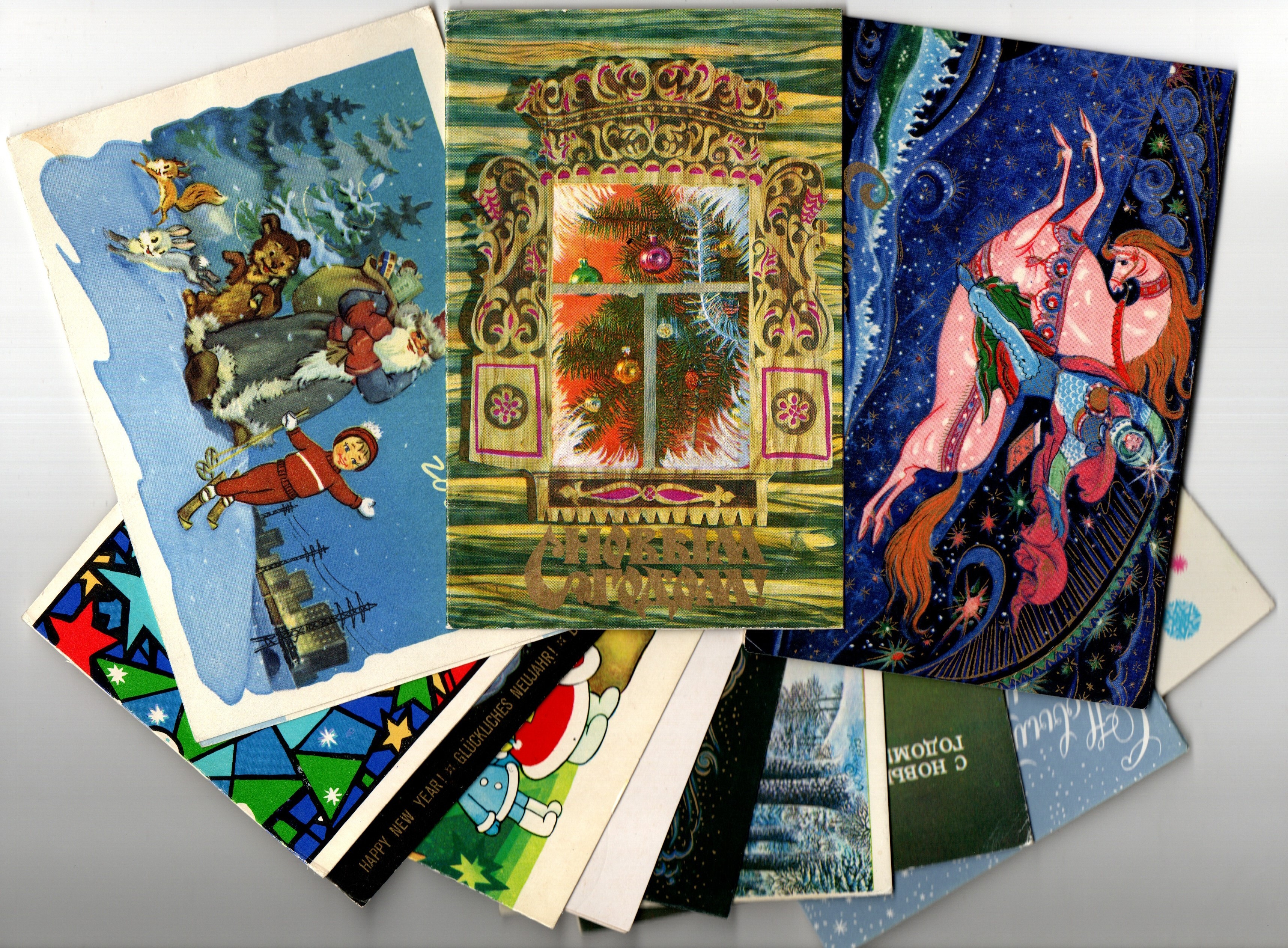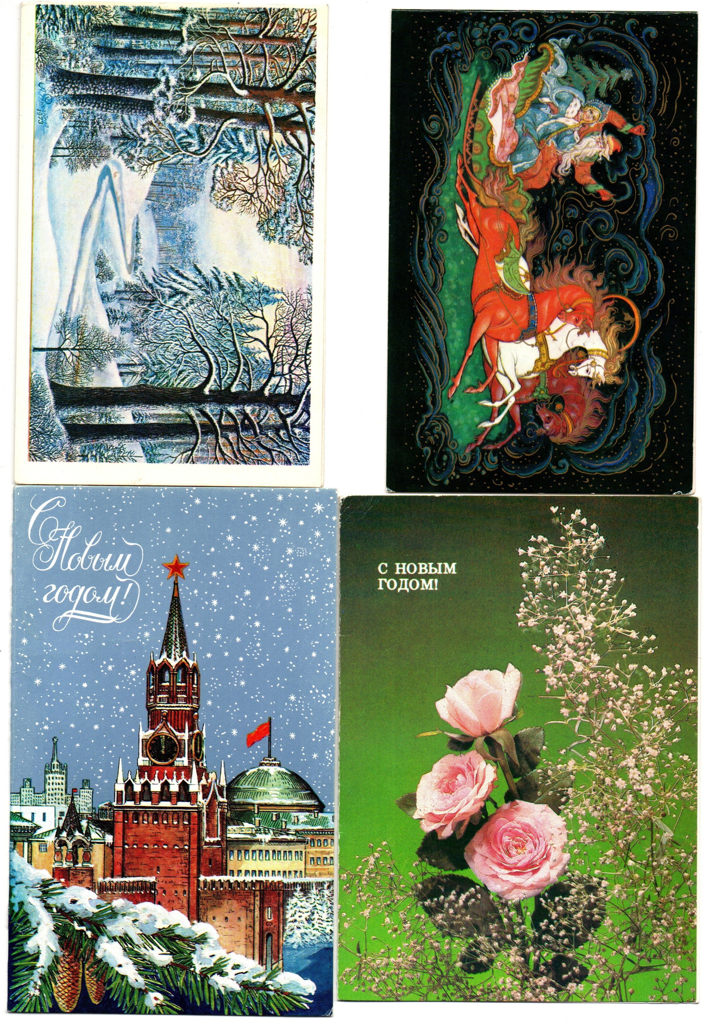 Подборка двойных поздравительных открыток — 12 штук— разные художники — подписаны, без повторов