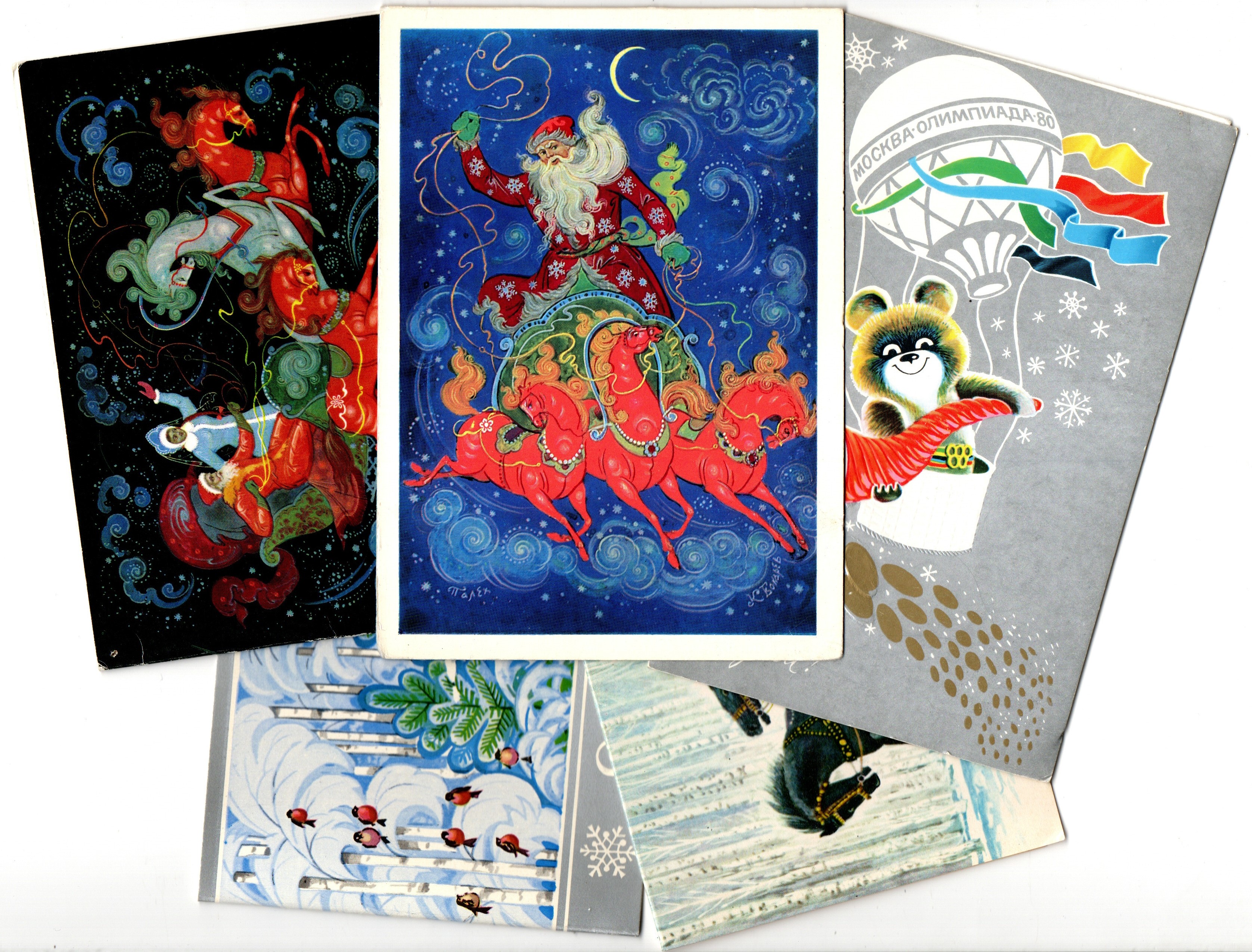 Оригинальная подборка двойных раритетных Новогодних поздравительных открыток — 5 штук— чистые, без повторов, времён СССР. Каждая открытка эксклюзивна и создана талантливыми художниками Советского Союза. Старинные открытки имеют неповторимый стиль СССР и набирают все больше и больше популярности среди коллекционеров.