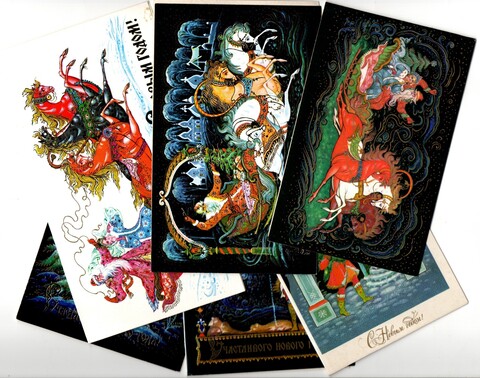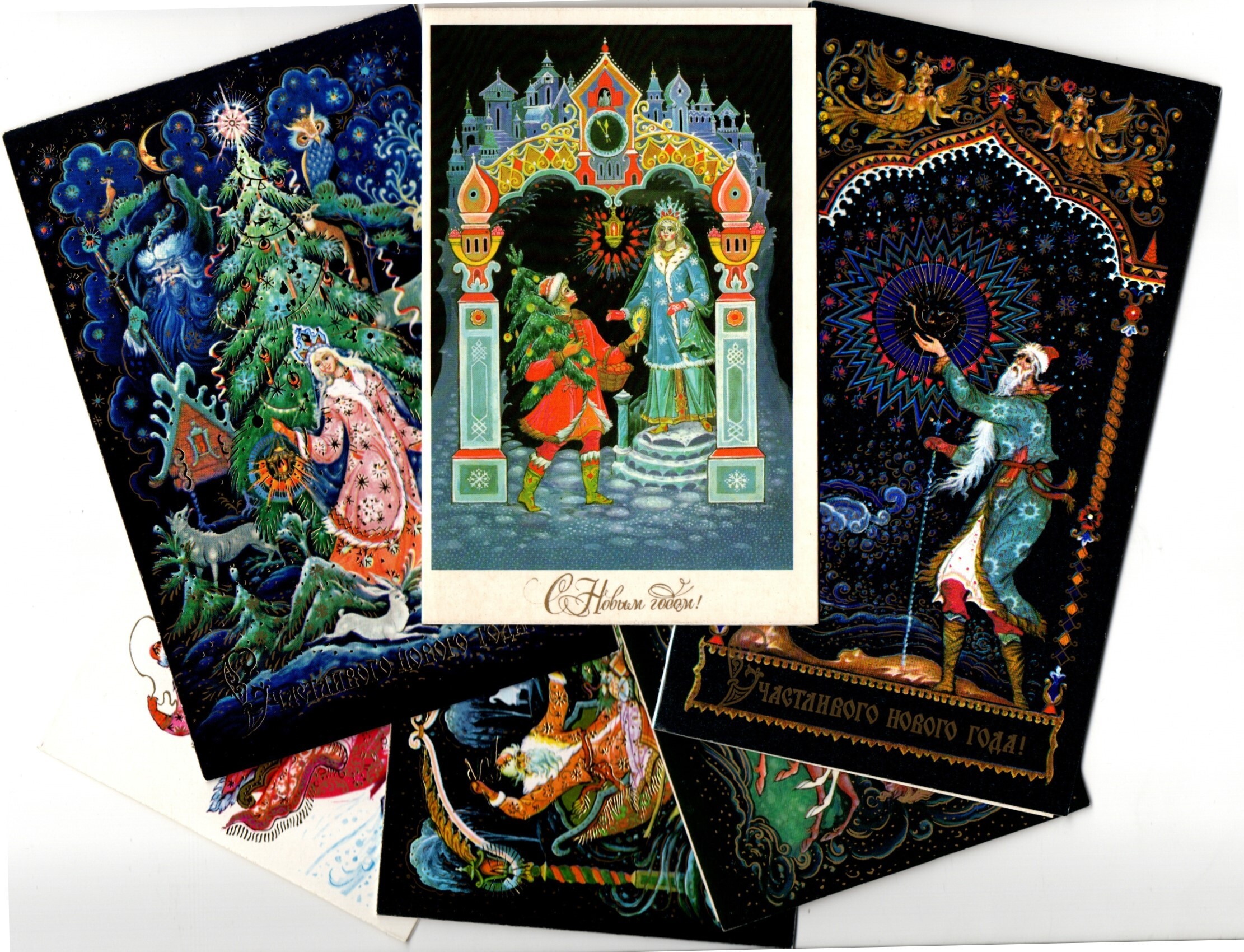 Подборка двойных поздравительных открыток — 6 штук— художник Константин Адрианов — чистые, без повторов. Винтажные новогодние открытки времён СССР в стиле Палех это отличный выбор для создания новогоднего настроения! Уникальная подборка из 6 праздничных открыток от художника К. Андрианова под любое настроение! Искусство от автора Палех, оригинал. Его произведения хранятся в собраниях Государственного музея Палехского искусства, Государственного русского музея и др. Яркие и интересные сюжеты. Без повторений – каждая открытка эксклюзивна! Отлично подойдет в личную коллекцию и на подарок коллекционерам открыток.