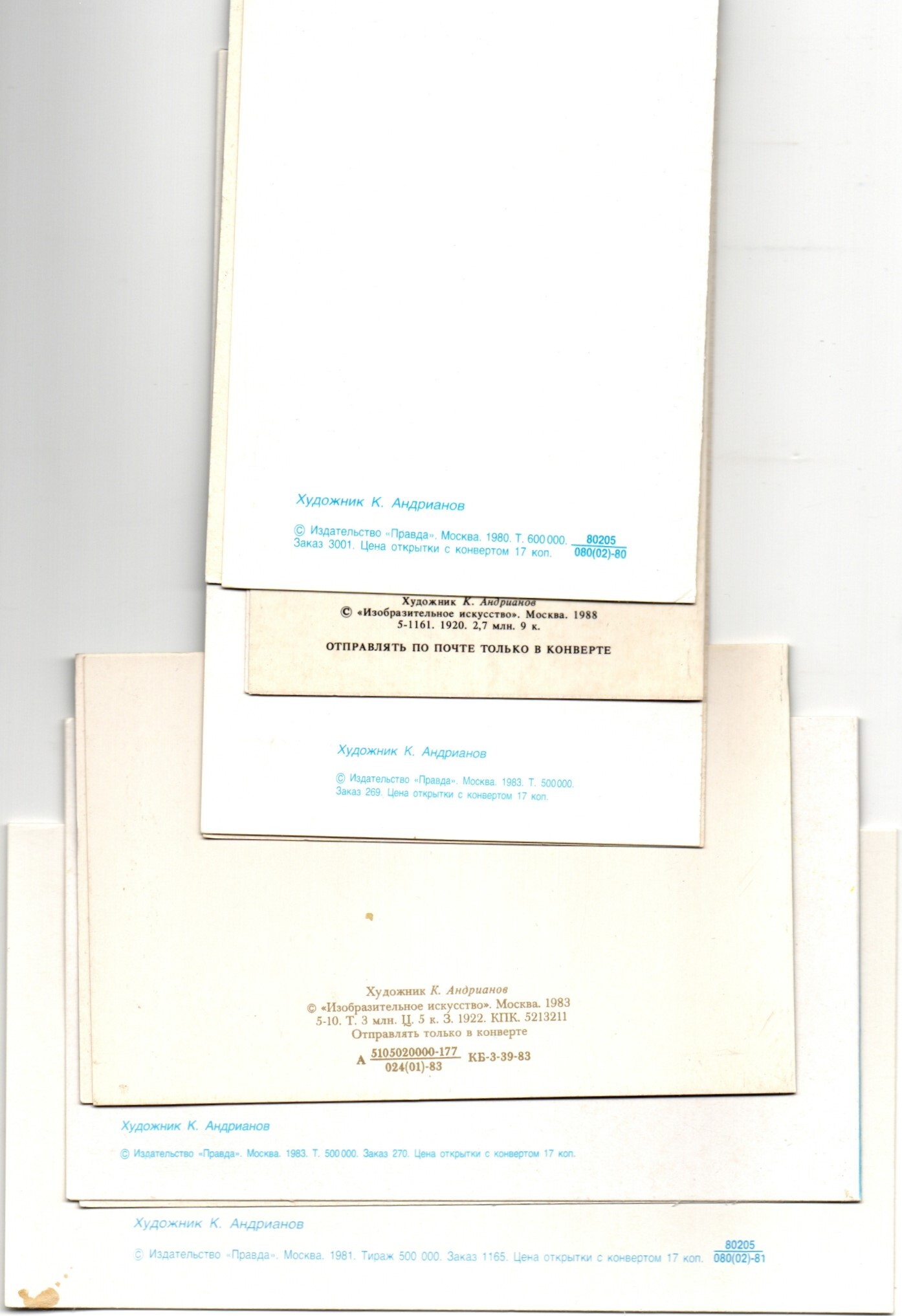 Подборка двойных поздравительных открыток — 6 штук— художник К. Андрианов — чистые, без повторов