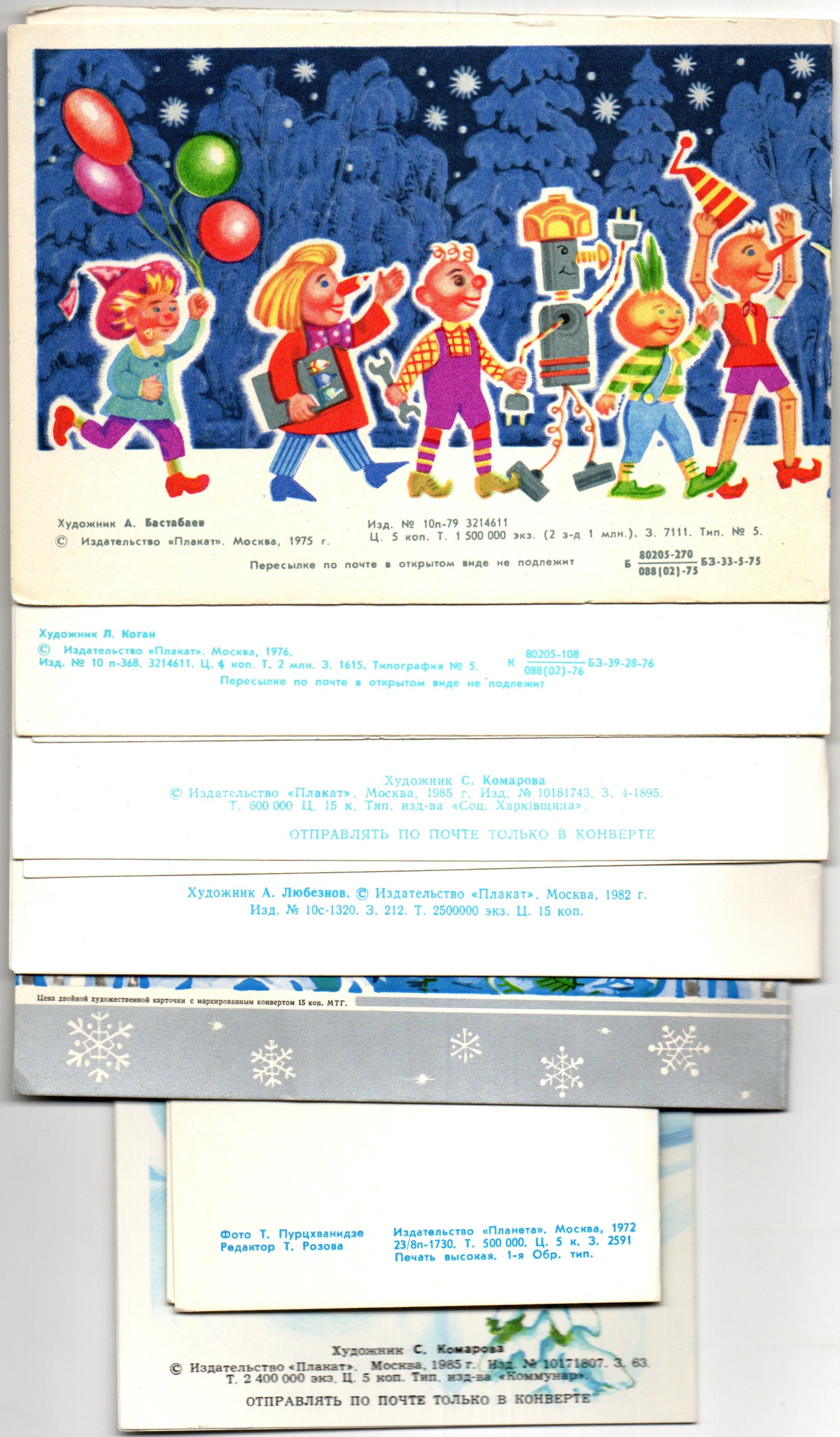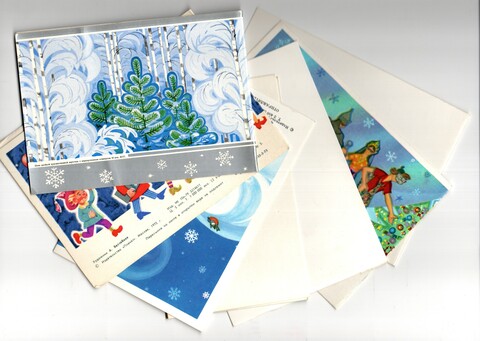 Оригинальная подборка двойных раритетных Новогодних поздравительных открыток — 7 штук— чистые, без повторов, времён СССР. Каждая открытка эксклюзивна и создана талантливыми художниками Советского Союза. Старинные открытки имеют неповторимый стиль СССР и набирают все больше и больше популярности среди коллекционеров.