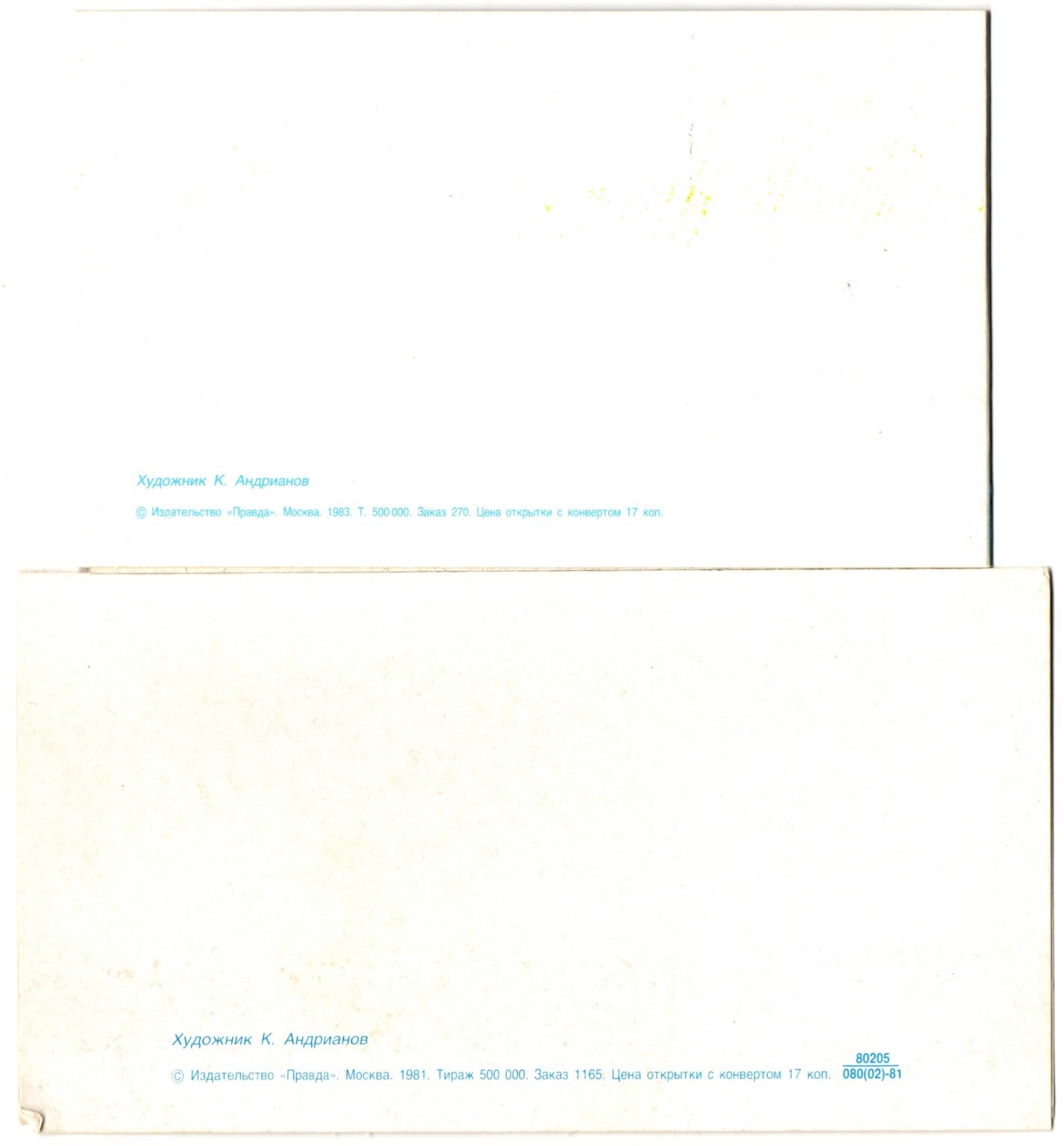 Подборка из 2х штук двойных поздравительных открыток художник К. Андрианов — чистые