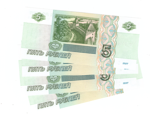 Подборка из 4 банкнот 5 рублей 1997 года одинаковый номер 9546234 разных серий чв, чз, чл, чг