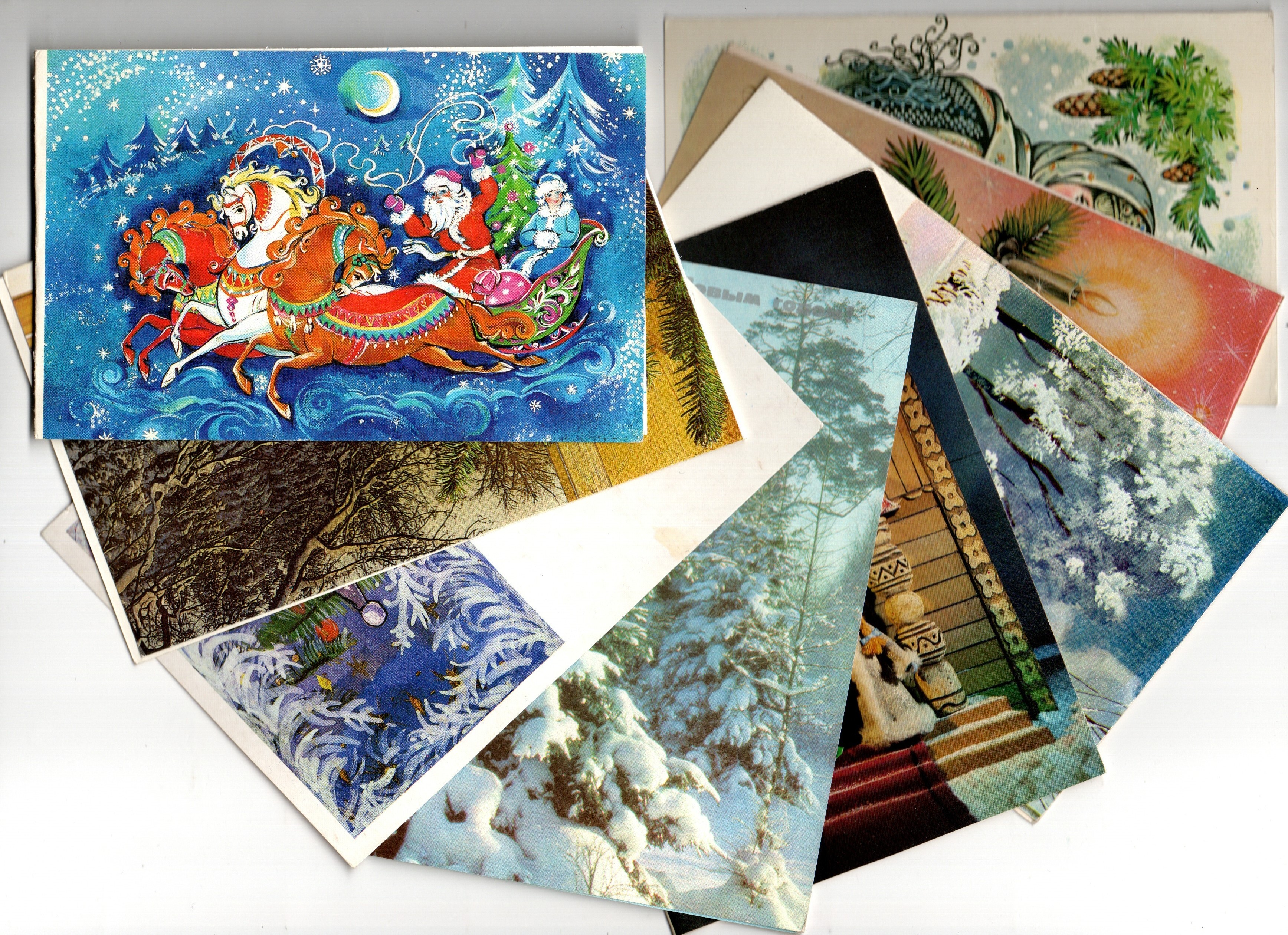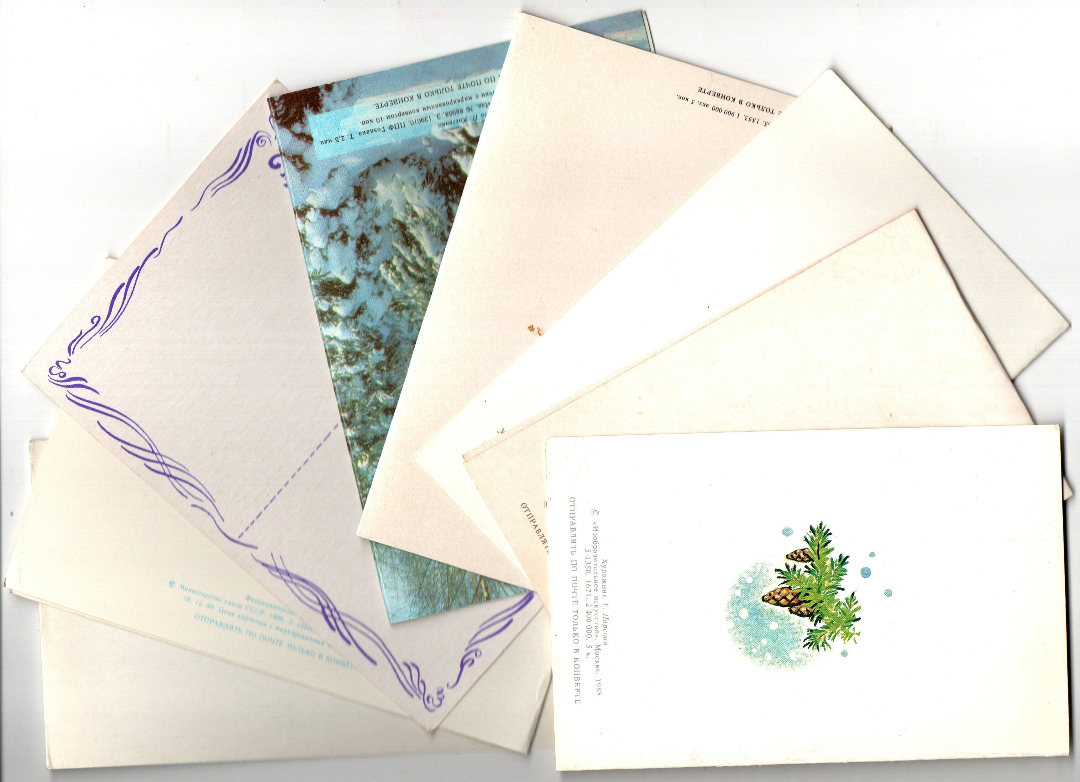 Подборка из двойных поздравительных открыток — 8 штук— разные художники — чистые, без повторов