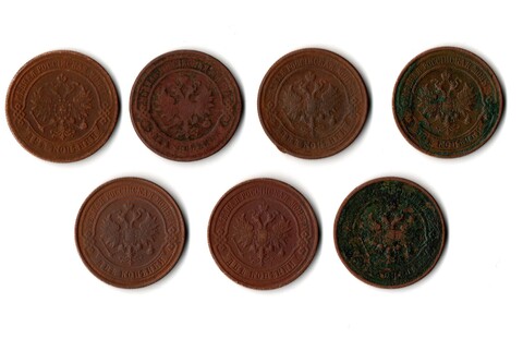 Подборка монет 2 копейки — 7 штук — медь — царская Россия