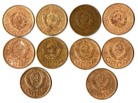 Подборка монет 3 копейки — 10 штук — ранние советы