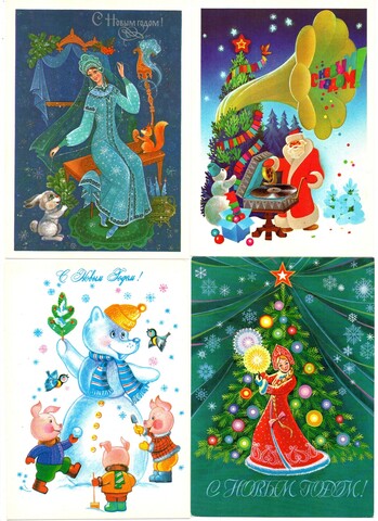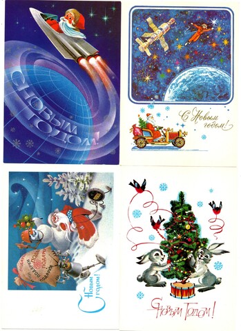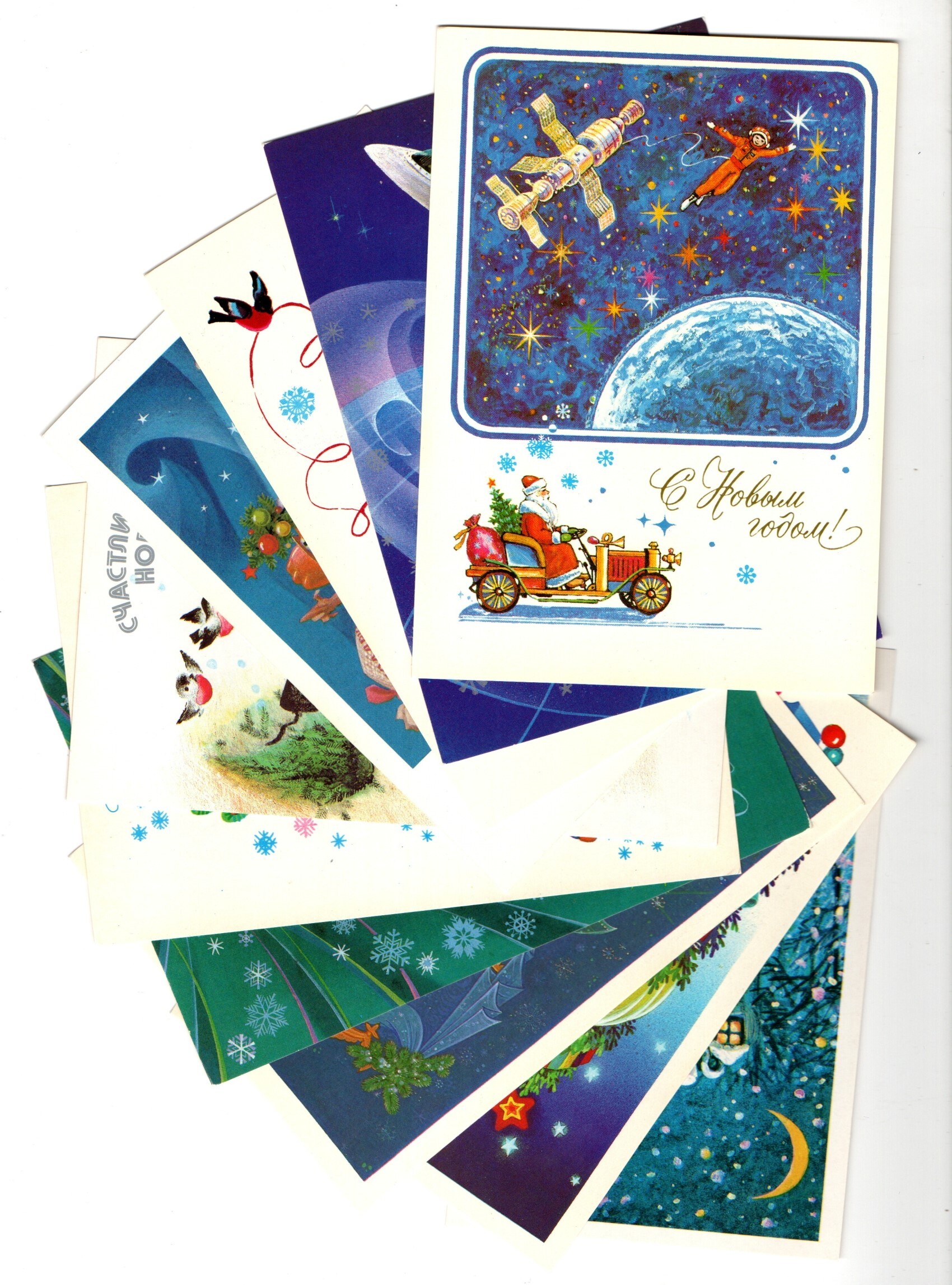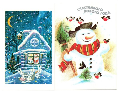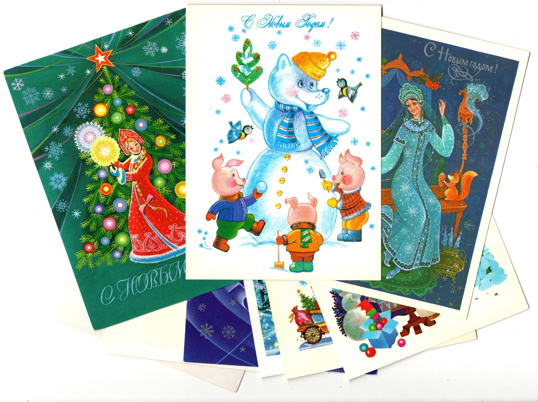 Подборка Новогодних поздравительных открыток — 10 штук — разные художники — чистые, без повторов.