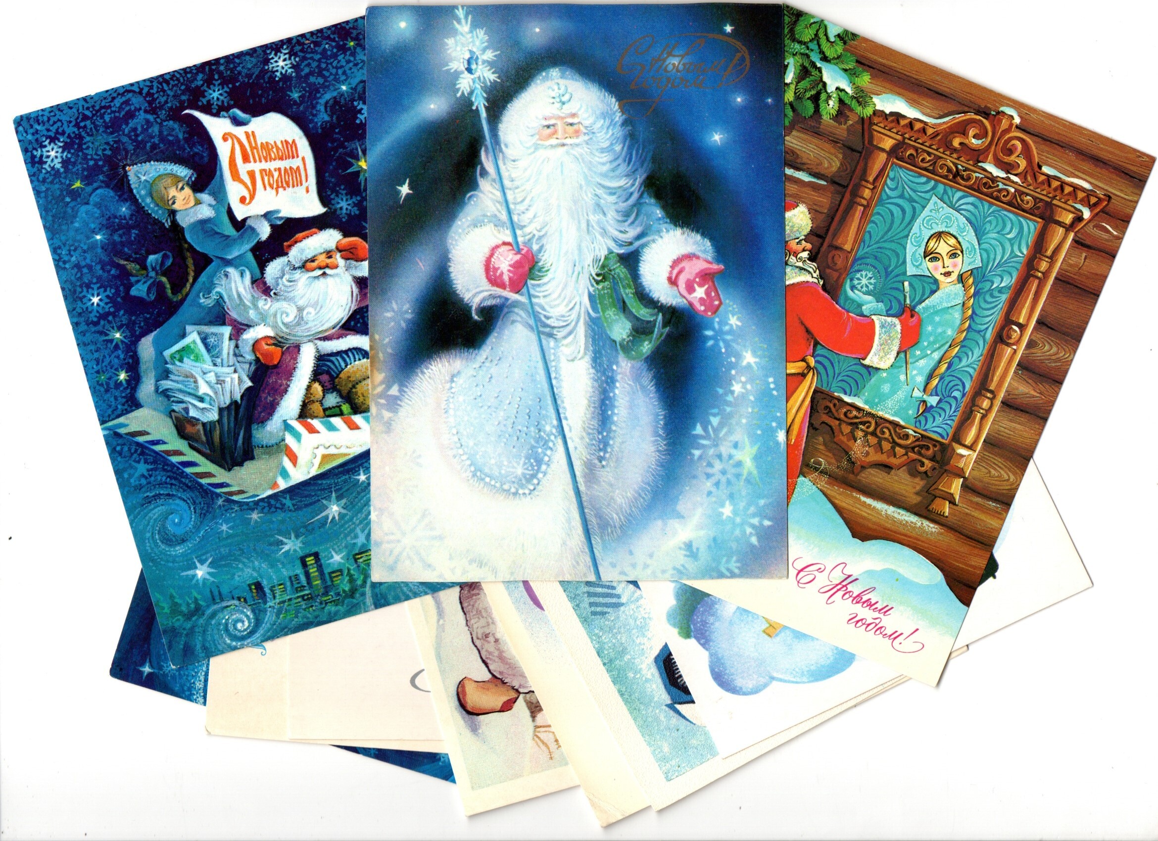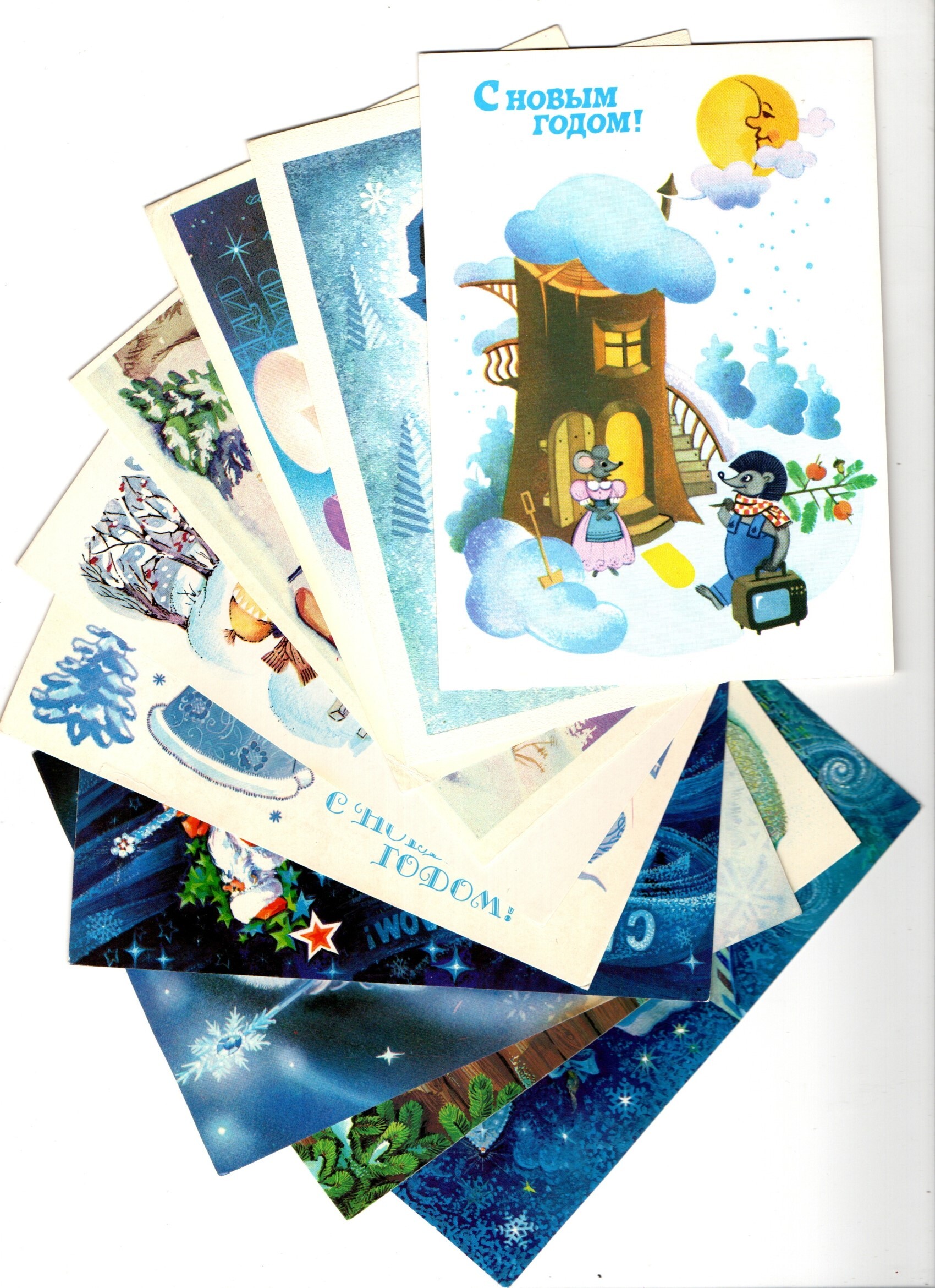 Подборка Новогодних поздравительных открыток — 10 штук — разные художники — чистые, без повторов.