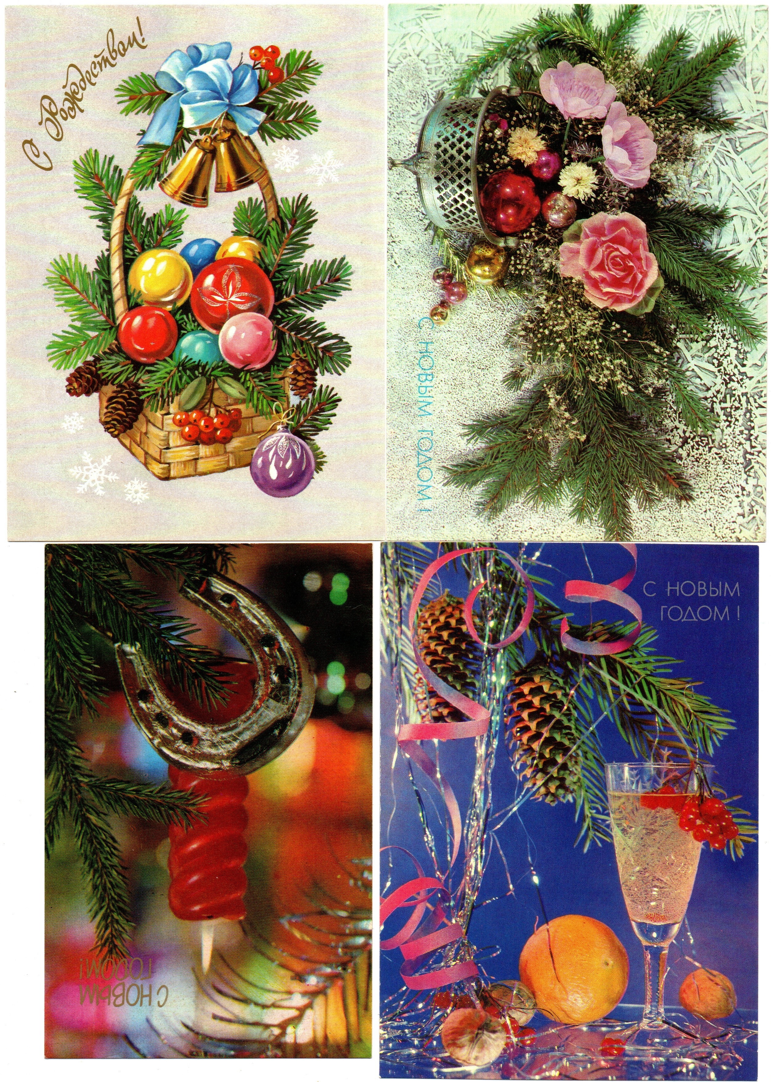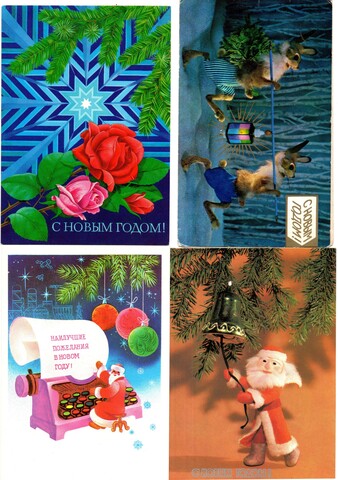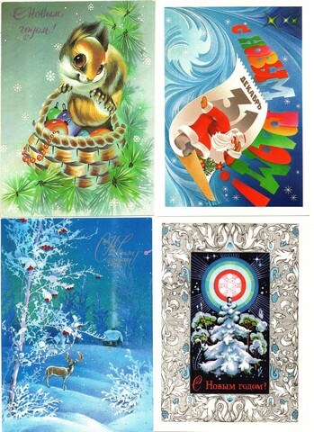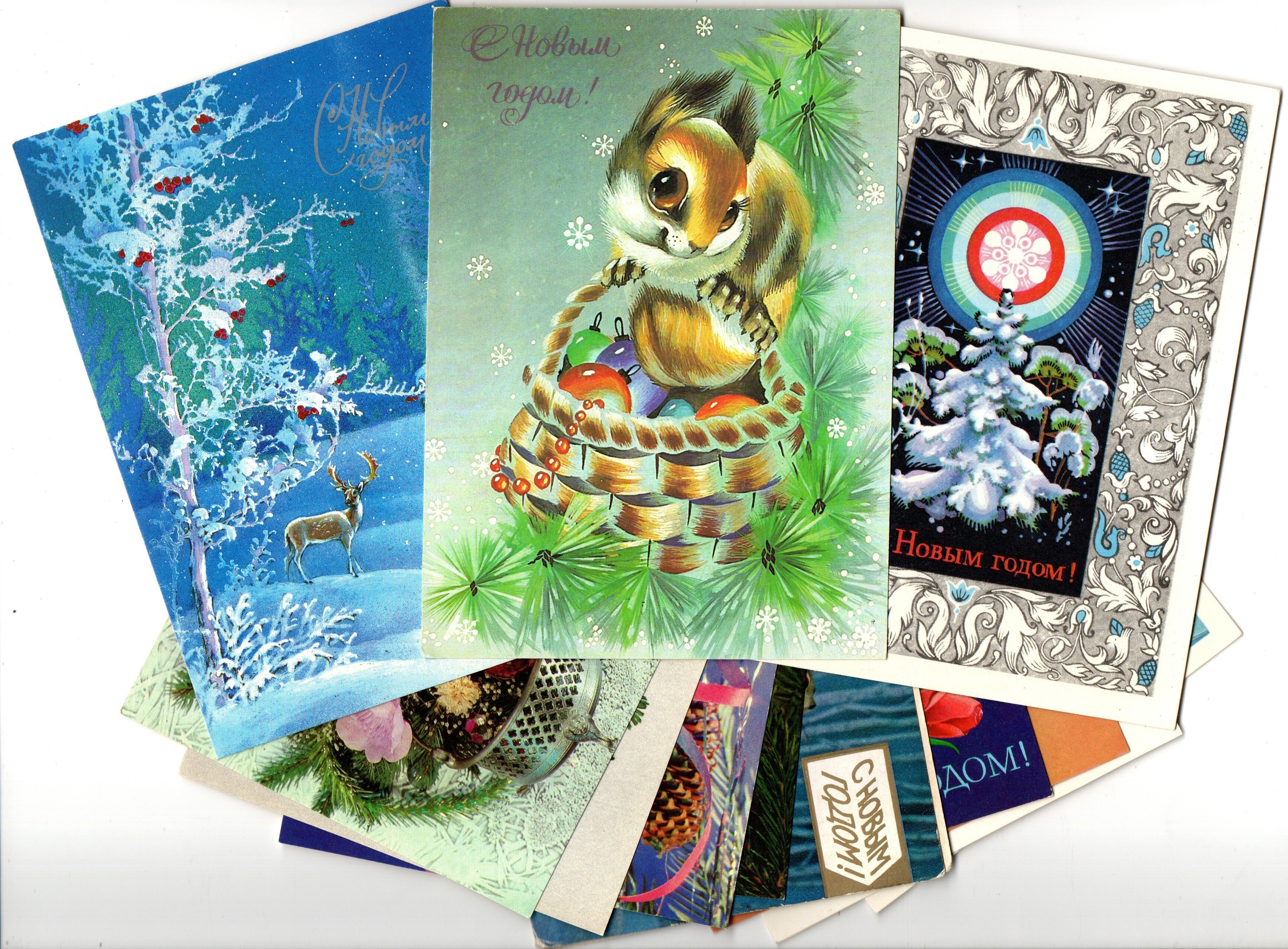 Подборка Новогодних поздравительных открыток — 12 штук — разные — чистые, без повторов - СССР