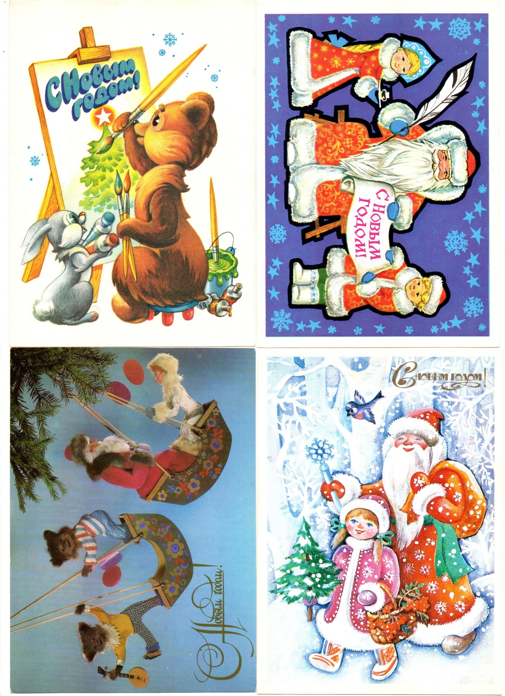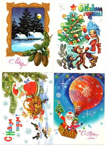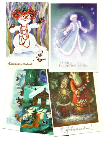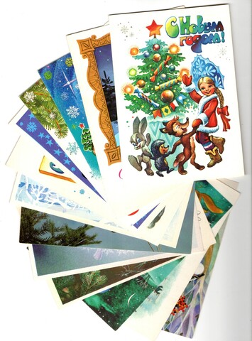 Подборка Новогодних поздравительных открыток — 13 штук — разные художники — чистые, без повторов.