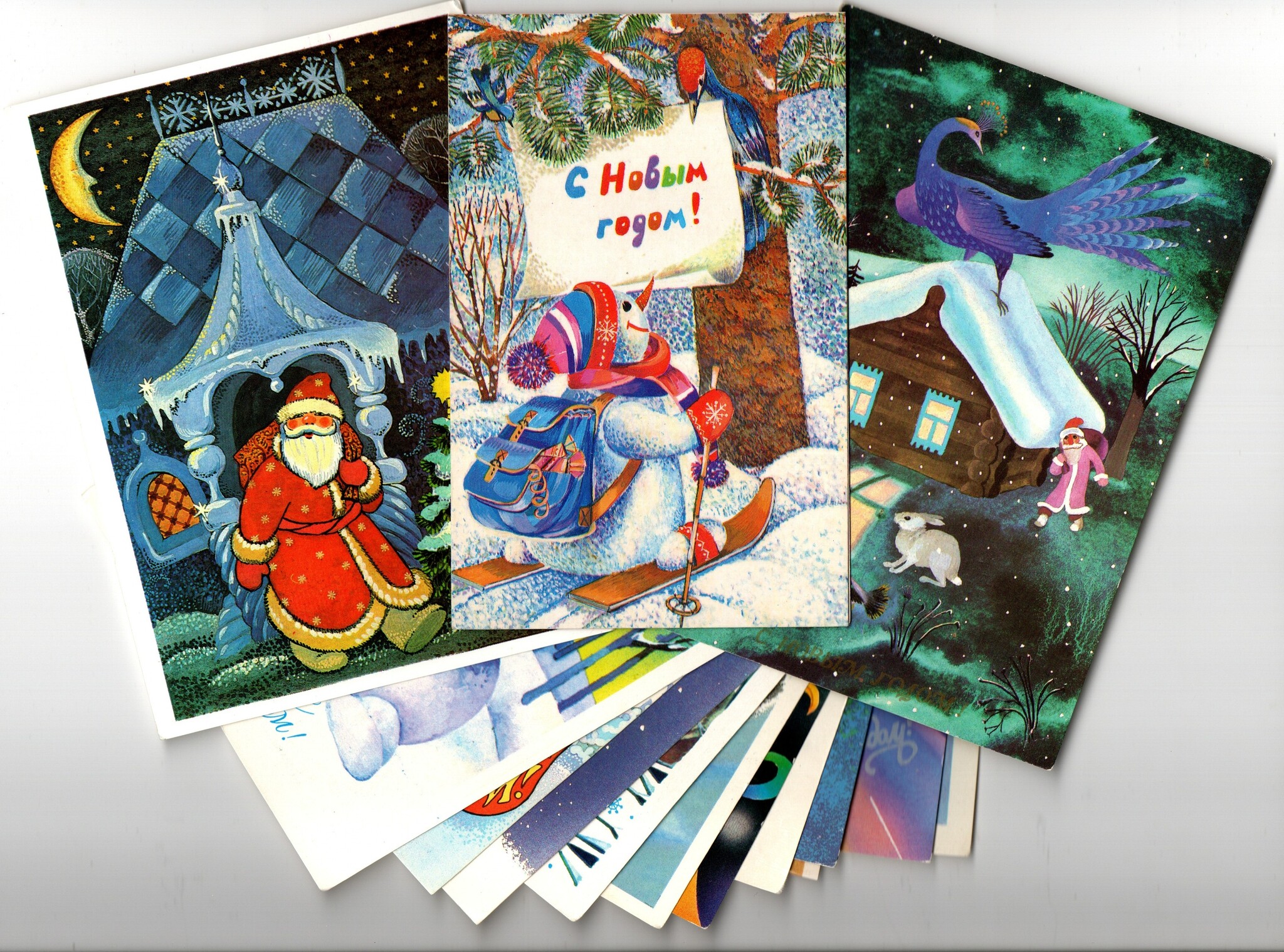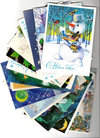 Подборка Новогодних поздравительных открыток — 15 штук — разные художники — чистые, без повторов