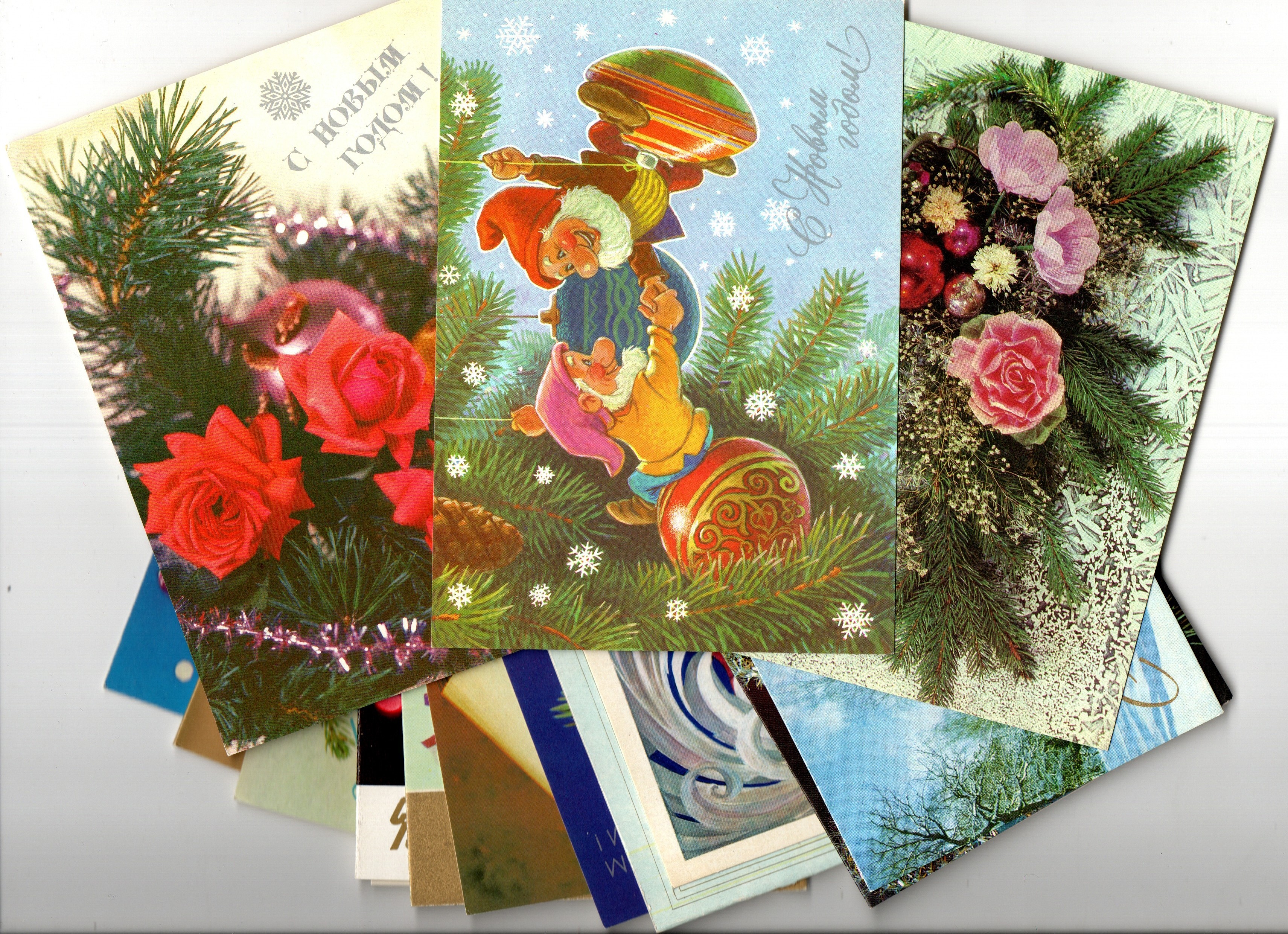 Подборка Новогодних поздравительных открыток — 15 штуки — разные, чистые, без повторов