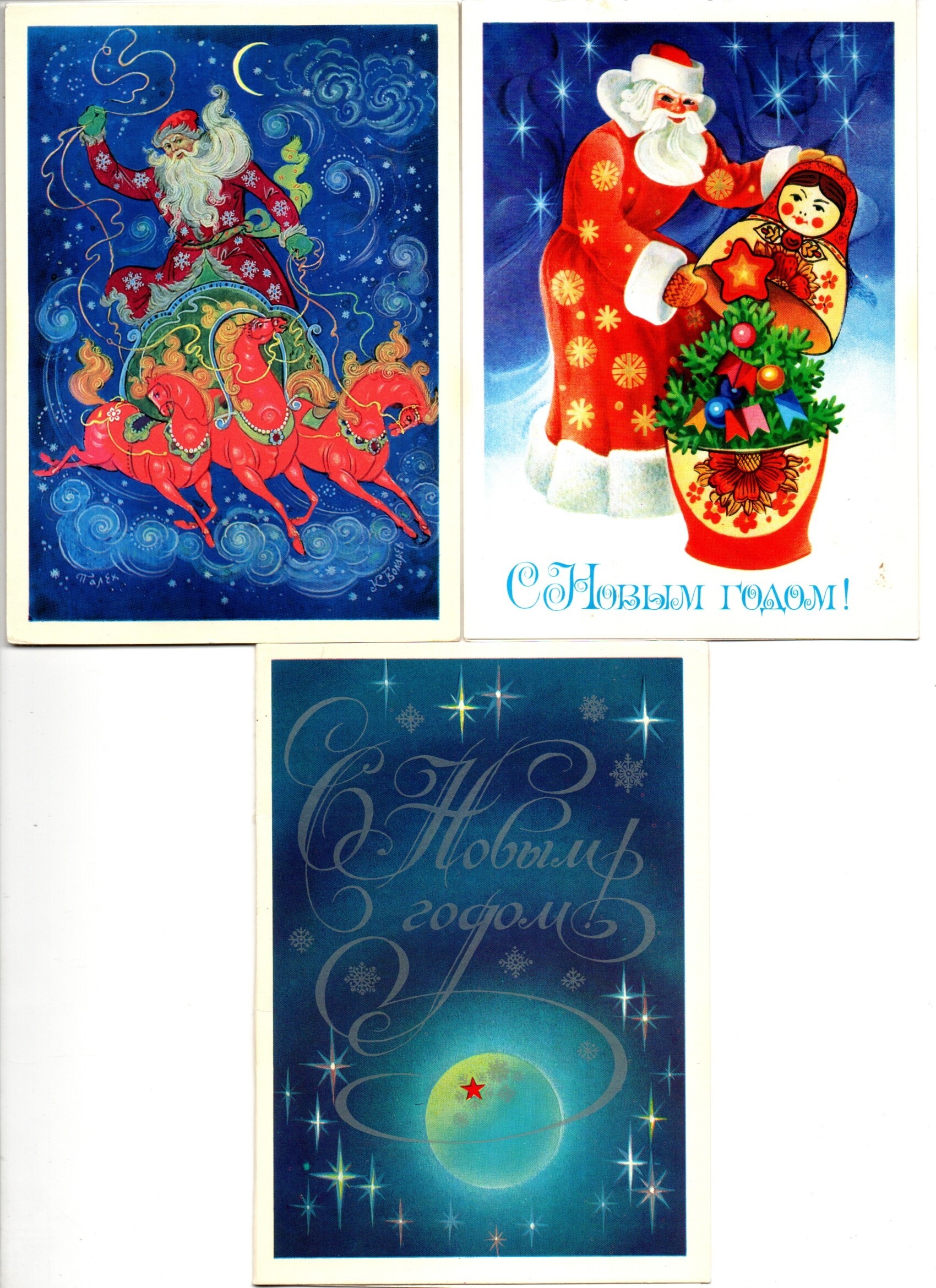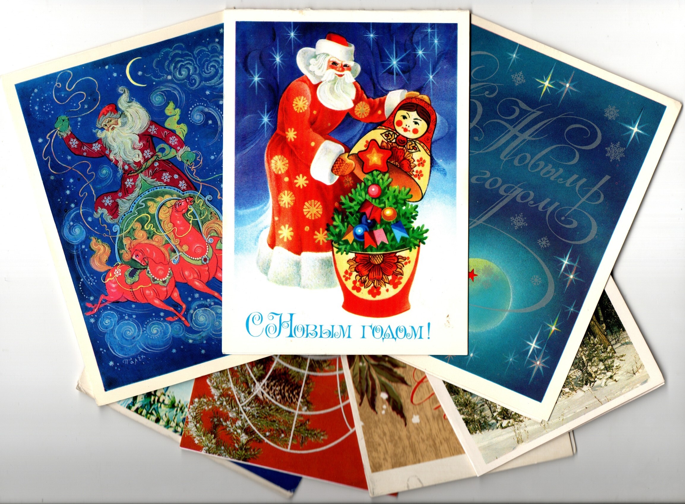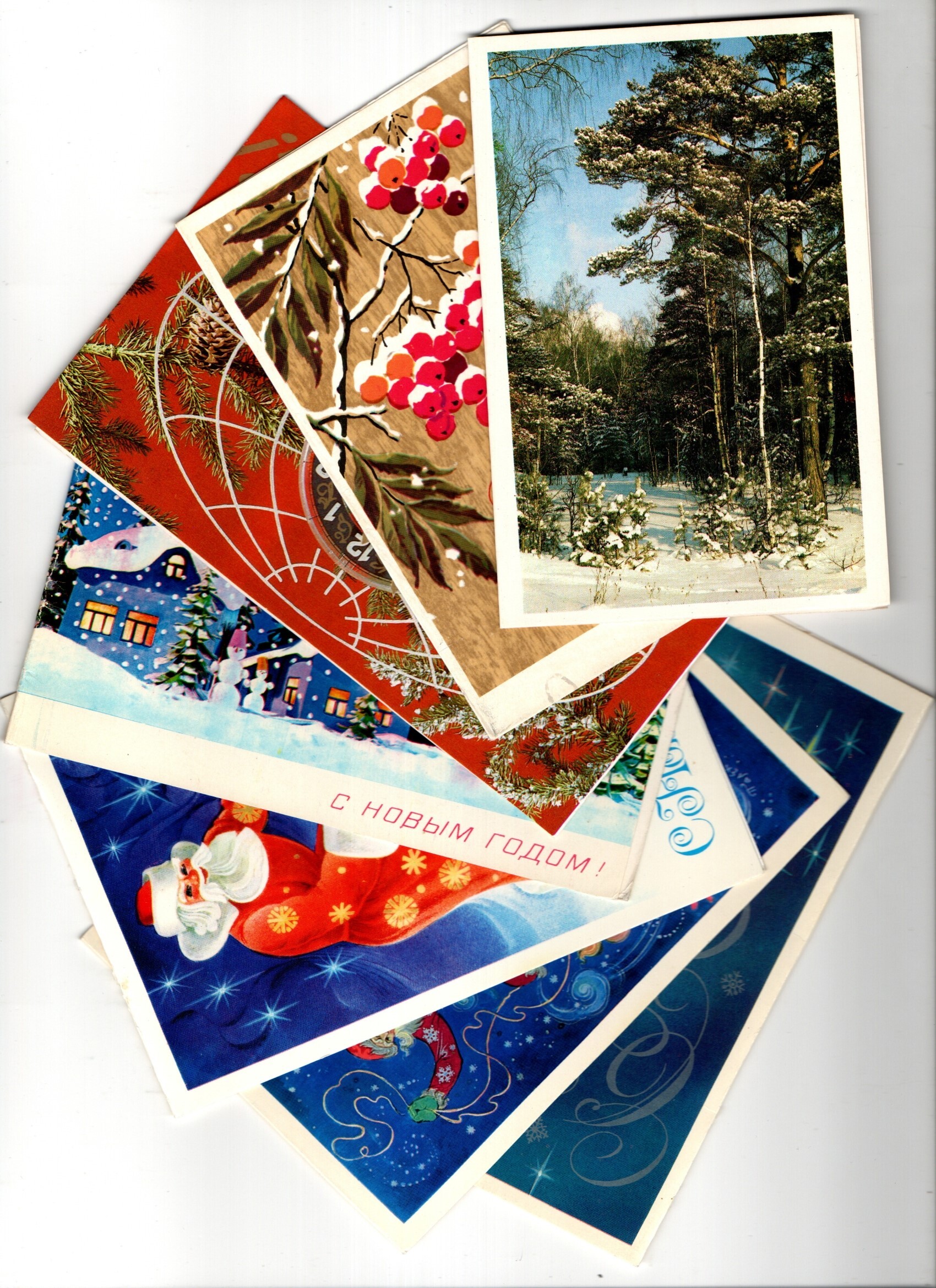 Подборка Новогодних поздравительных открыток, двойные — 7 штук — разные художники — чистые, без повторов.