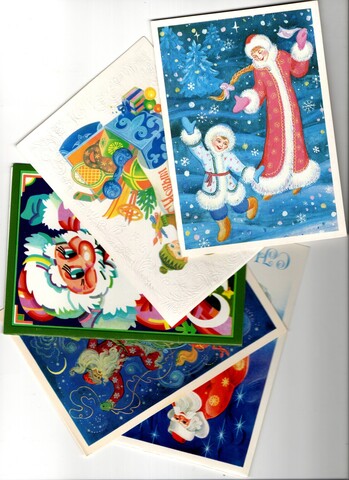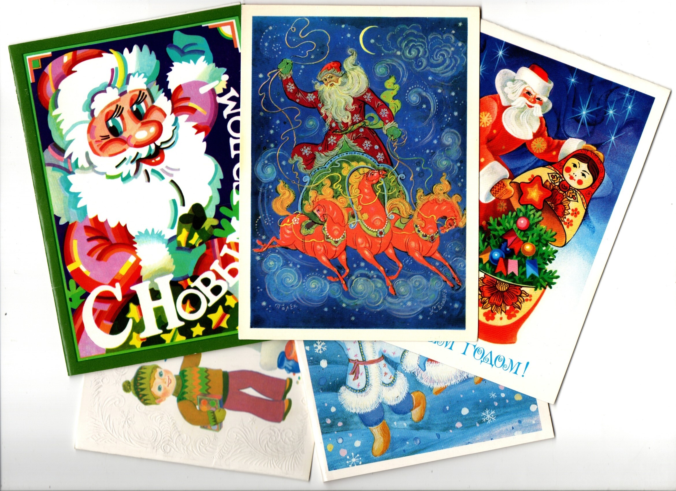 Подборка Новогодних поздравительных открыток, двойные — 5 штук — разные художники — чистые, без повторов.