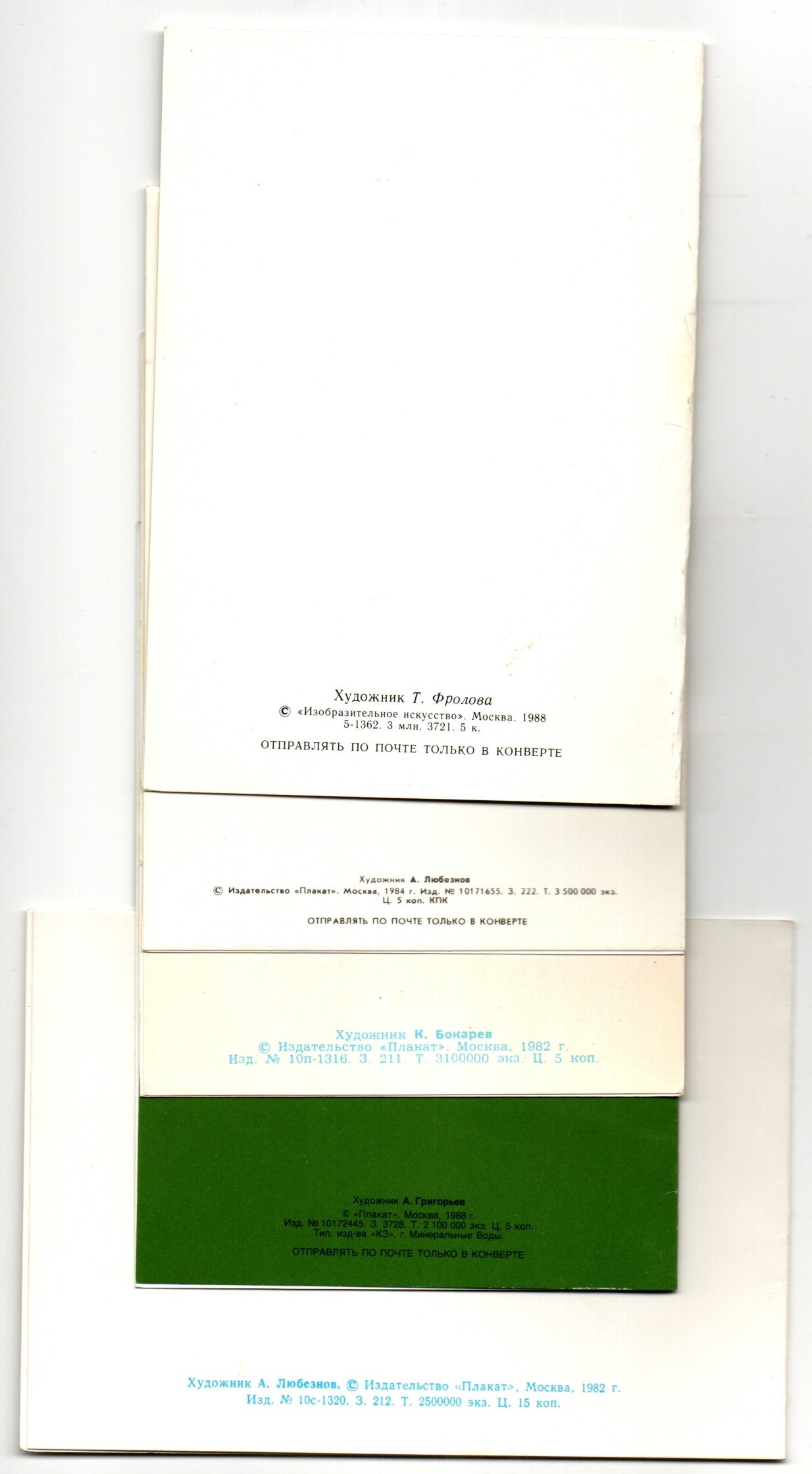 Подборка Новогодних поздравительных открыток, двойные — 5 штук — разные художники — чистые, без повторов