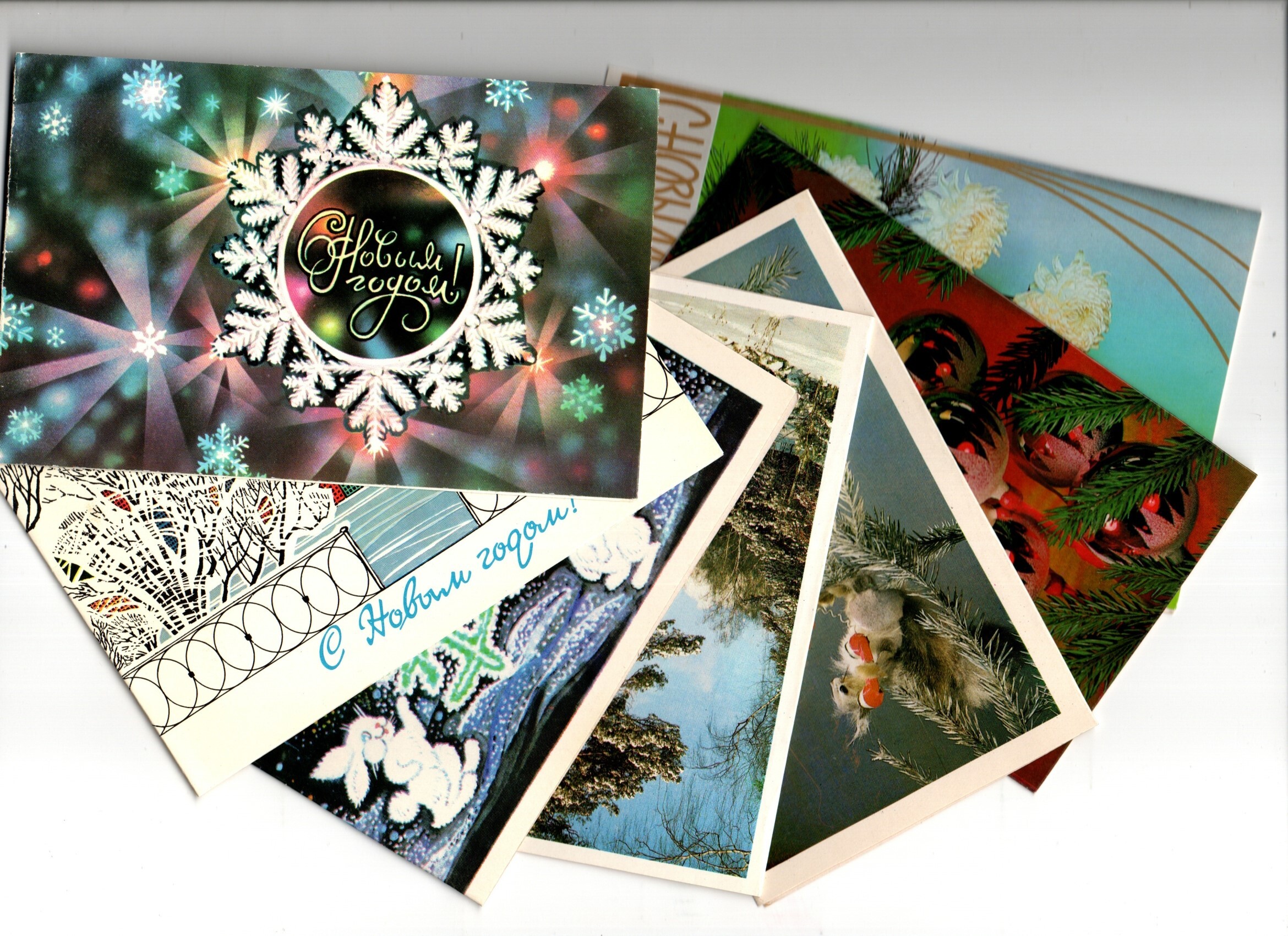 Подборка Новогодних поздравительных открыток, двойные — 7 штук — разные художники — чистые, без повторов.