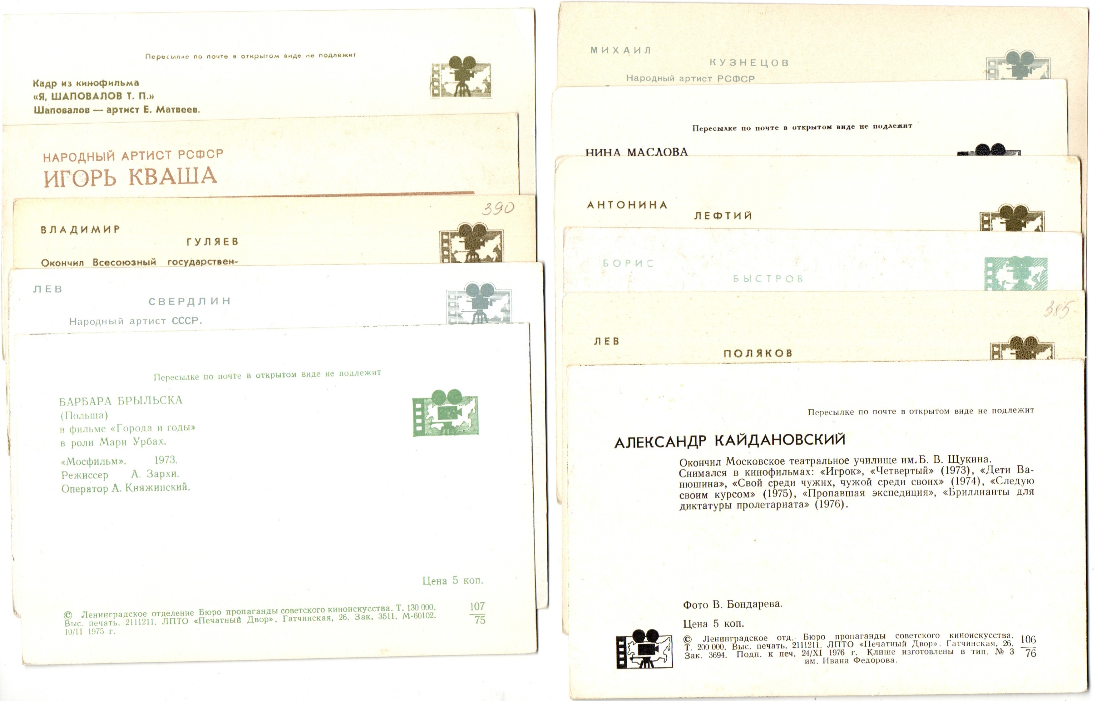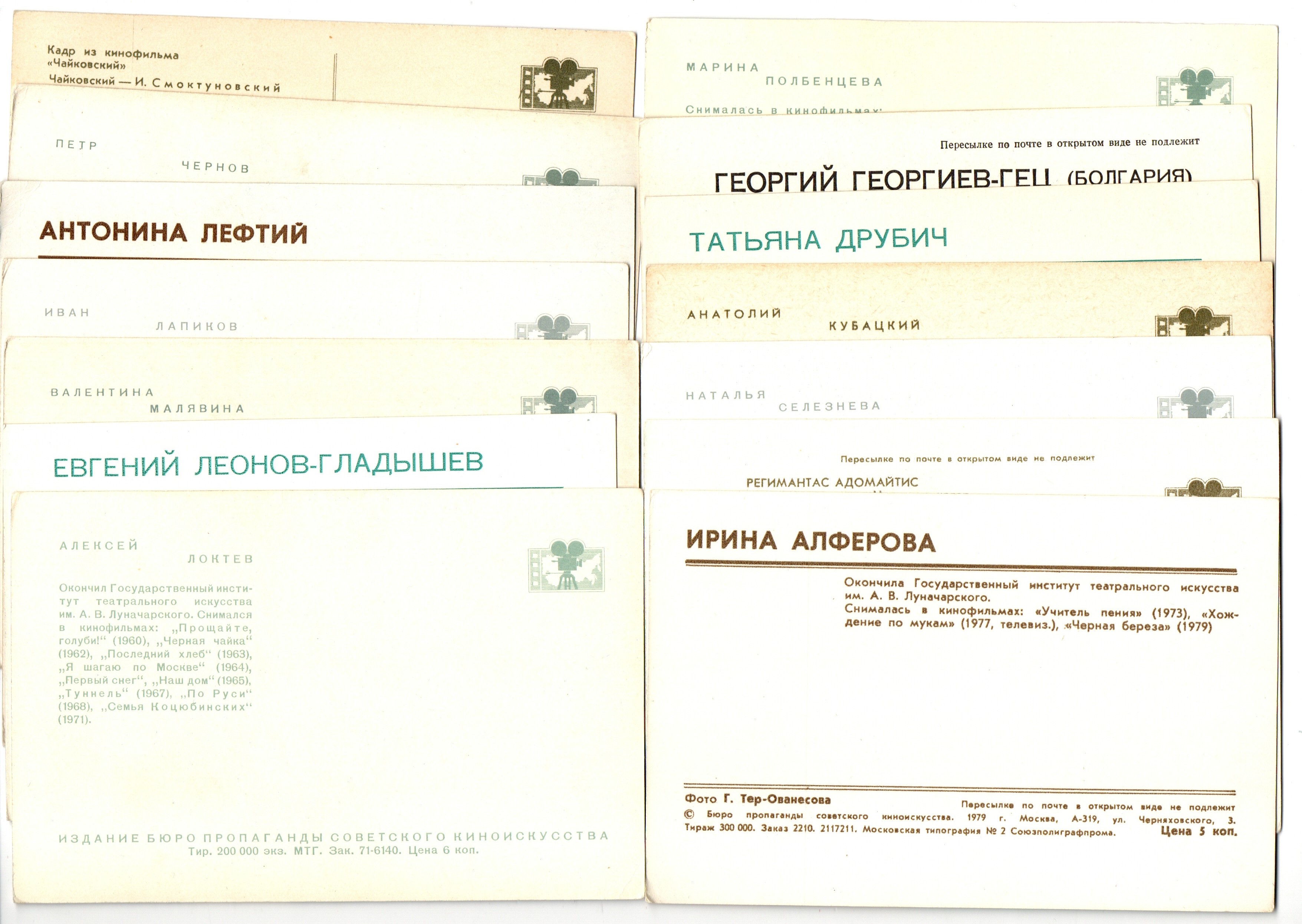 Подборка открыток с артистами СССР - 70, 80-е годы - 25 штук — чистые, без повторов