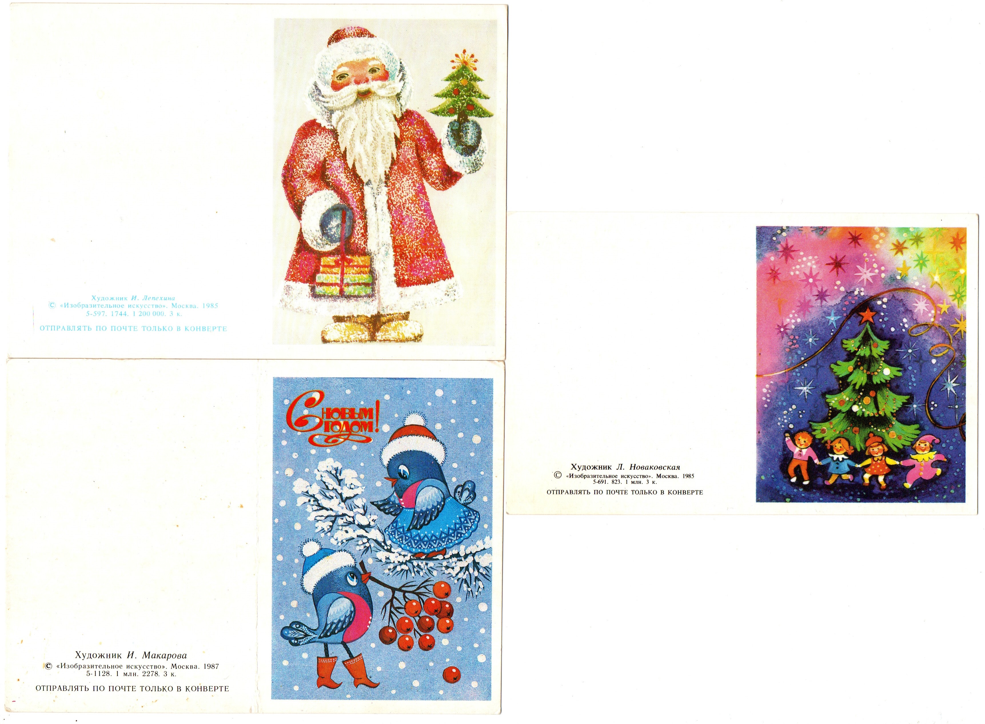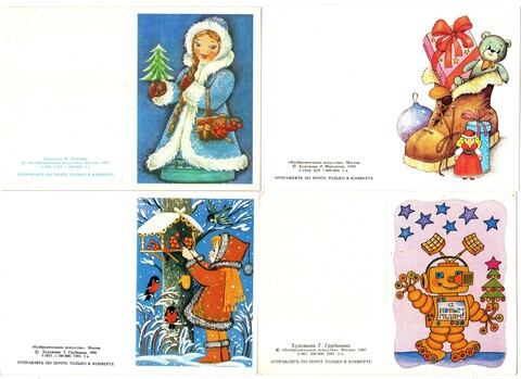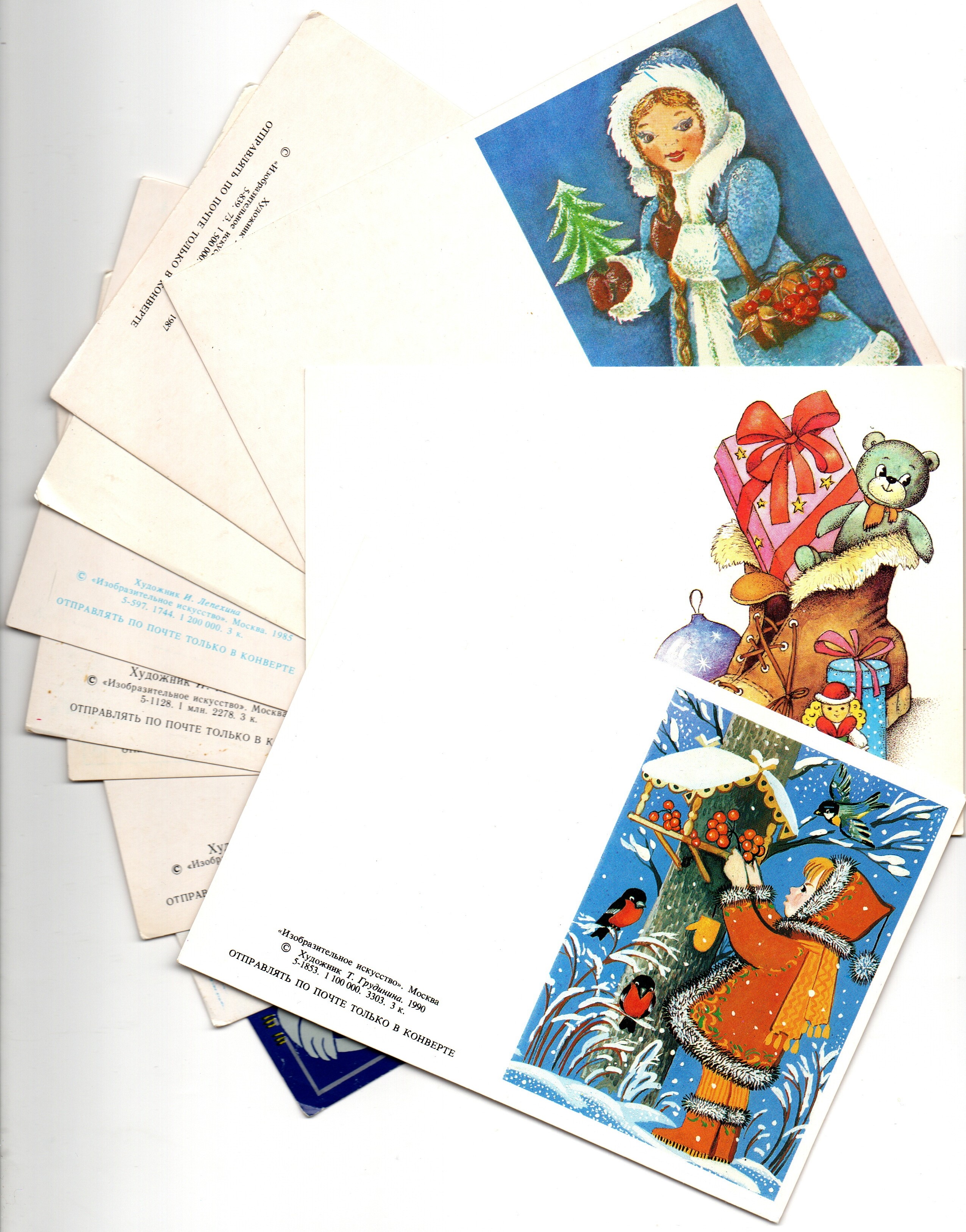 Подборка поздравительных двойных маленьких не сложенных новогодних открыток — 11 штук— разные художники: Фирсанова, Грудинина, Лепехина, Макарова, Новаковская Канканян, — чистые, без повторов времен СССР. Винтажные новогодние открытки времён СССР это отличный выбор для создания новогоднего настроения! Уникальная подборка из 10 праздничных открыток от разных советских художников под любое настроение! Без повторений – каждая открытка эксклюзивна! Отлично подойдет в личную коллекцию и на подарок коллекционерам открыток.