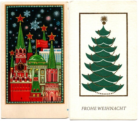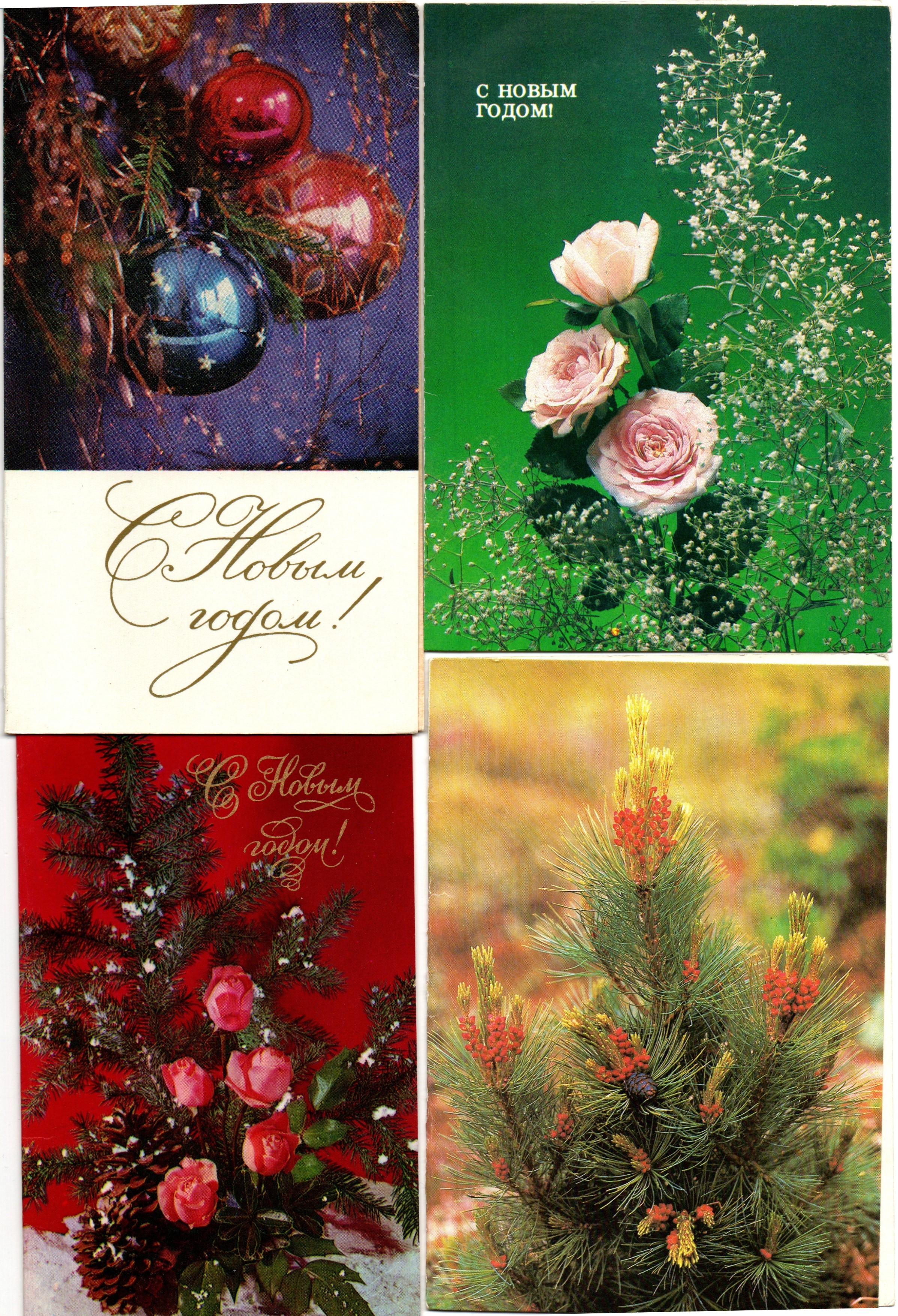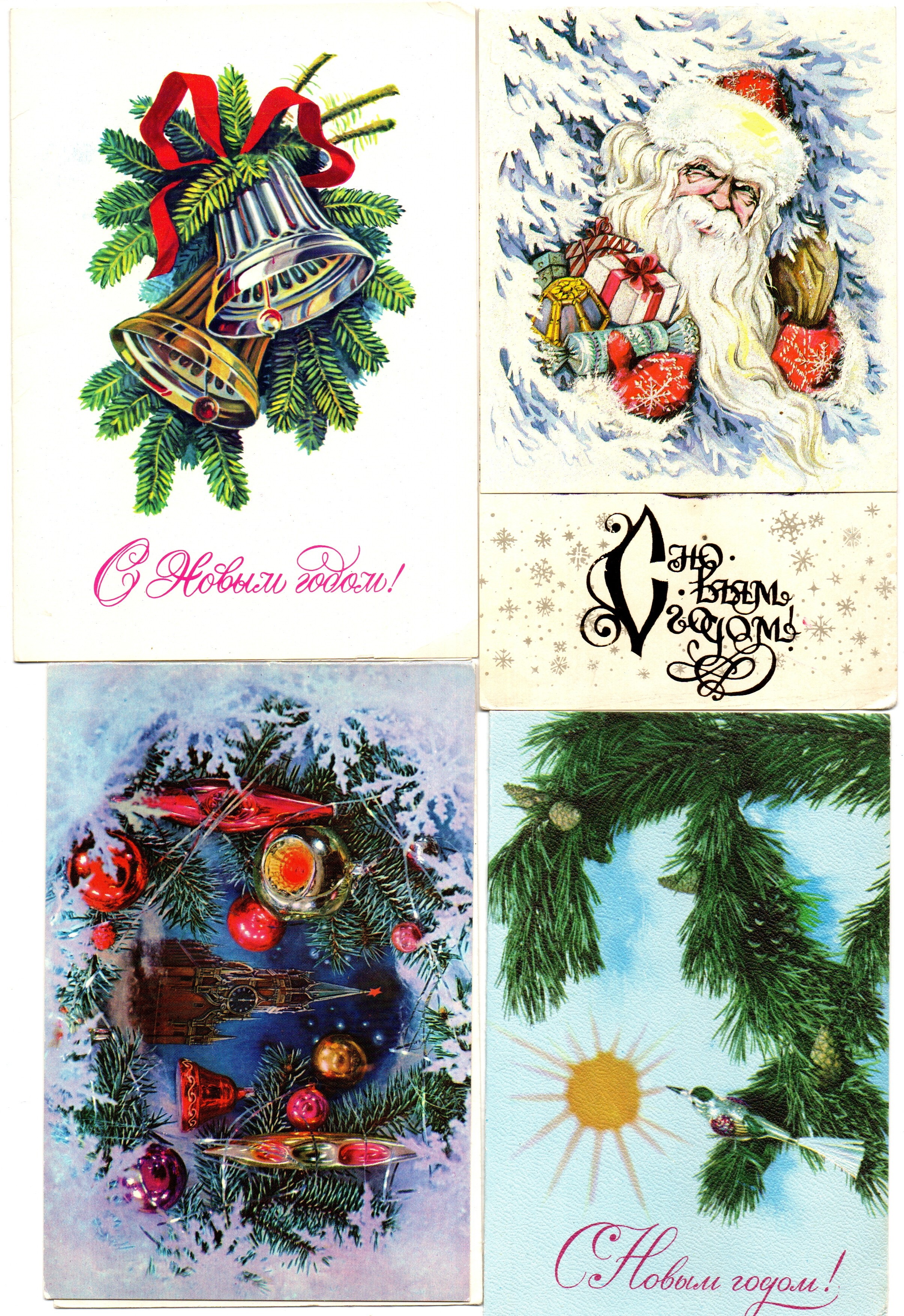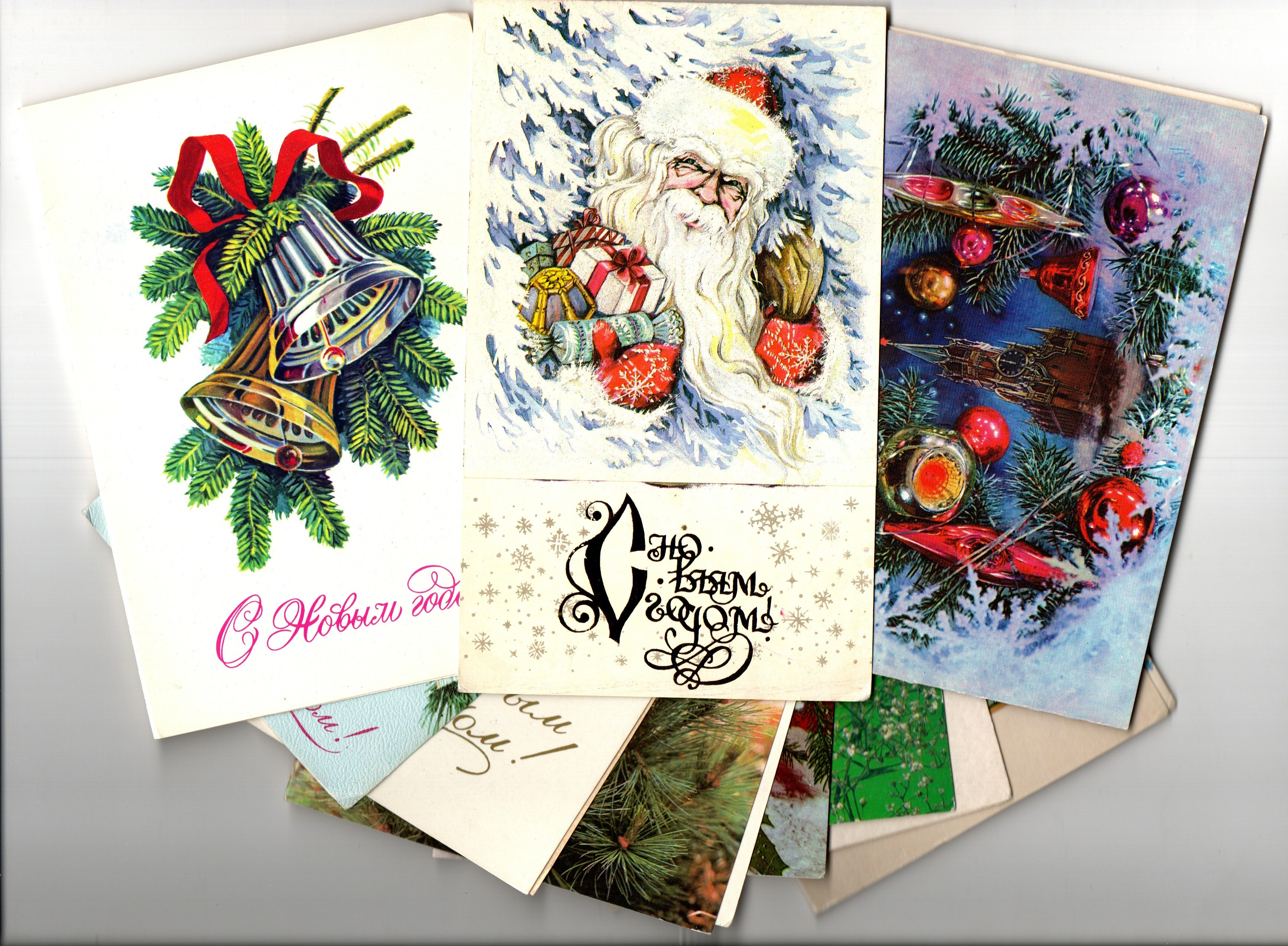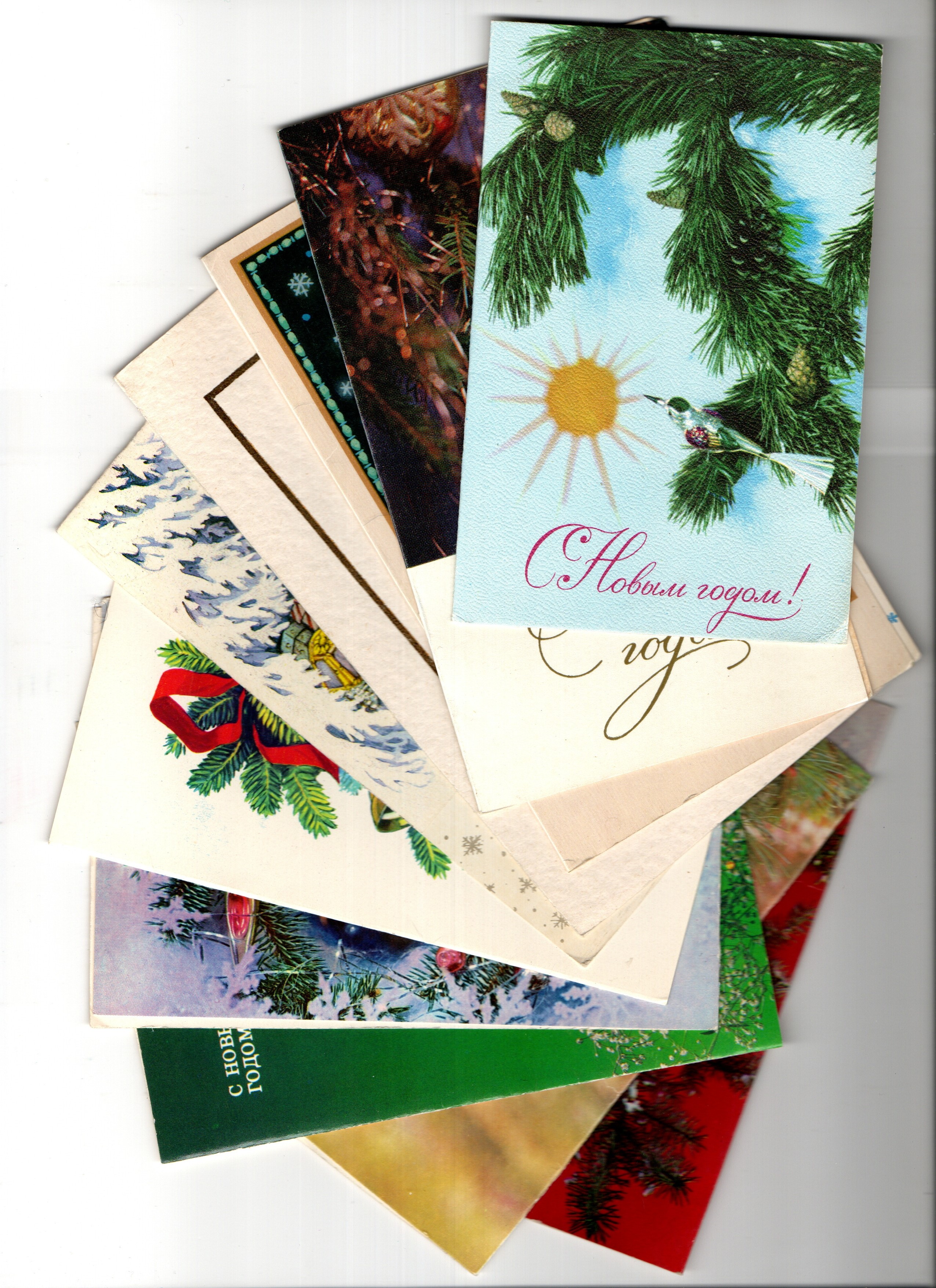 Подборка поздравительных двойных Новогодних открыток — 10 штук— разные художники —чистые, без повторов, времен СССР