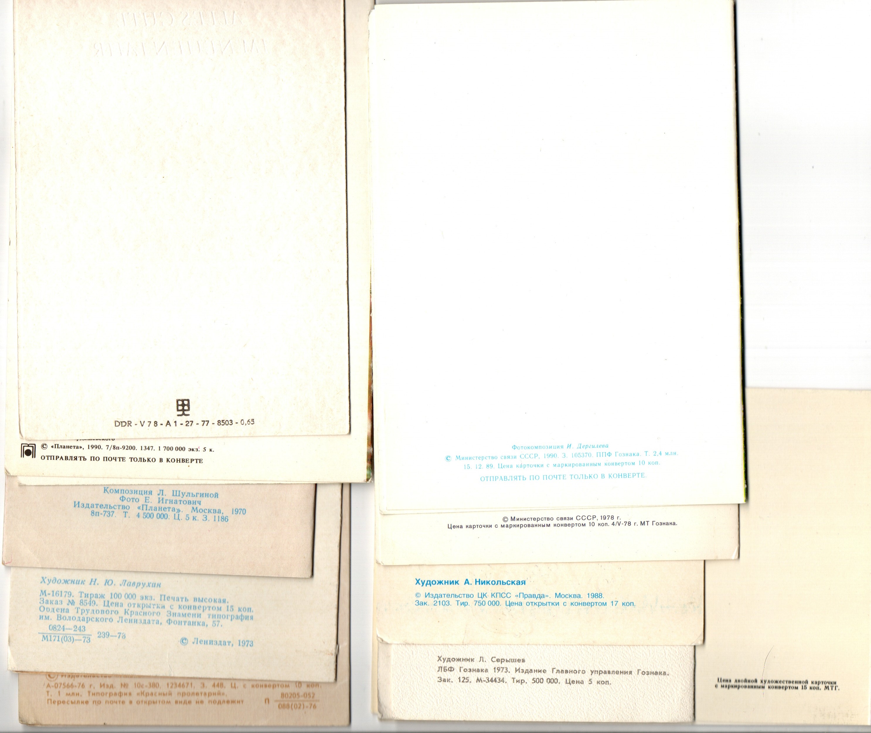 Оригинальная подборка двойных раритетных Новогодних поздравительных открыток — 10 штук — разные художники — чистые, без повторов, времён СССР 1960-1990 гг. Каждая открытка эксклюзивна и создана талантливыми художниками Советского Союза. Старинные открытки имеют неповторимый стиль СССР и набирают все больше и больше популярности среди коллекционеров. Советские открытки С Новым годом отлично подойдут в личную коллекцию и на подарок коллекционерам открыток. Состояние и комплектация на фото.