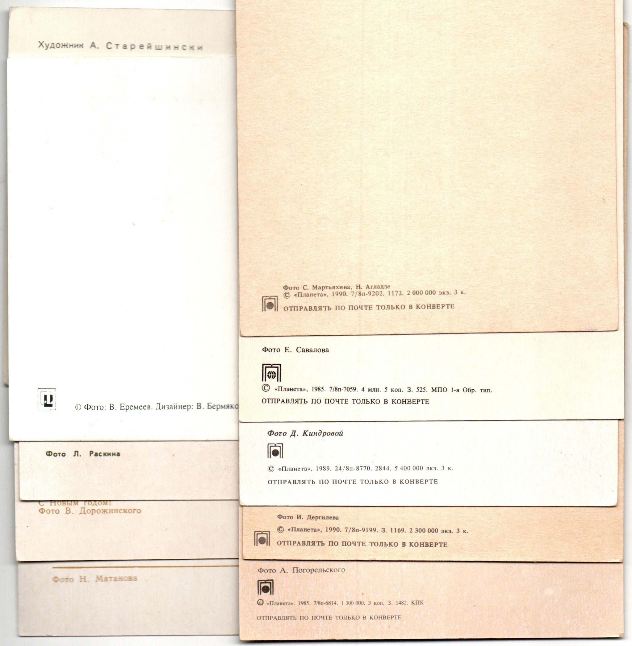Оригинальная подборка раритетных Новогодних поздравительных фотооткрыток — 10 штук — разные художники— чистые, без повторов, времён СССР. Каждая открытка эксклюзивна и создана талантливыми художниками Советского Союза. Старинные открытки имеют неповторимый стиль СССР и набирают все больше и больше популярности среди коллекционеров.