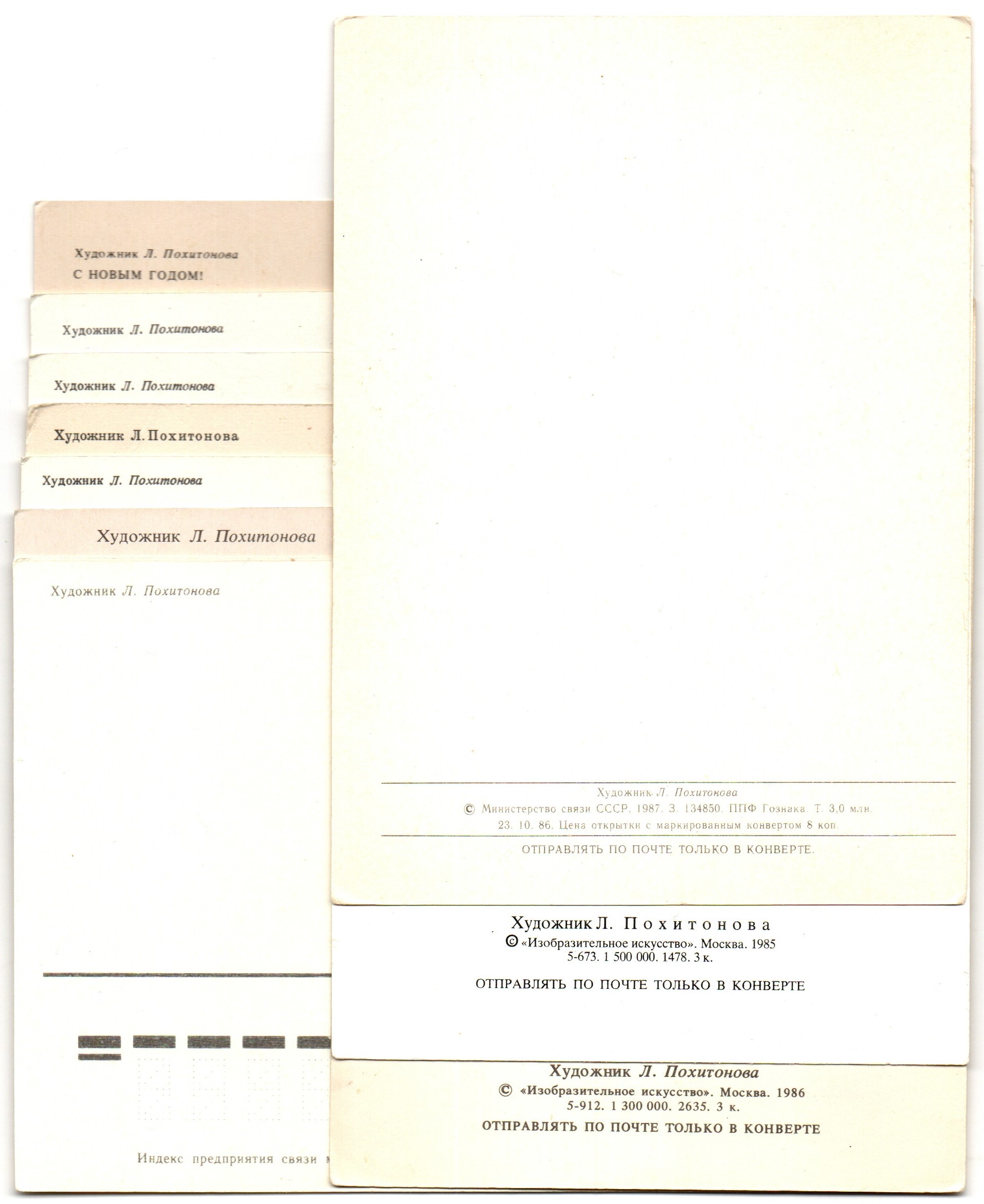 Подборка поздравительных Новогодних открыток — 10 штук— художник Л. Похитонова —чистые, без повторов, времен СССР